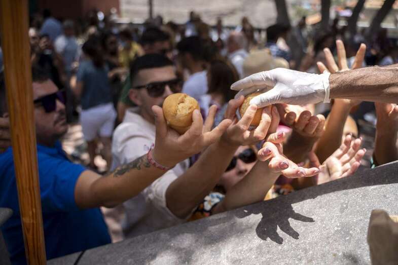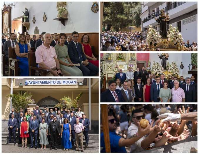La imagen del Santo, que data de 1814, recorrió las calles arropada por las autoridades, vecinos y vecinas al ritmo de los tambores y cornetas de la Banda Pasión de La Aldea. La procesión terminó nuevamente con la llegada de San Antonio El Chico al pórtico del templo situado en la plaza Sarmiento y Coto, donde se realizó la tradicional bendición de lirios, símbolo de pureza, y de un millar de panes, muestra de la generosidad del Santo con los pobres. Estos fueron repartidos después de que los presentes entonaran al unísono el 'Canto de los Pajaritos' y una vez más el ambiente se llenara de vítores a San Antonio y a Mogán, que por fin ha recuperado y disfrutado de sus fiestas.
