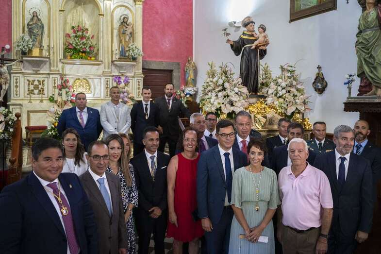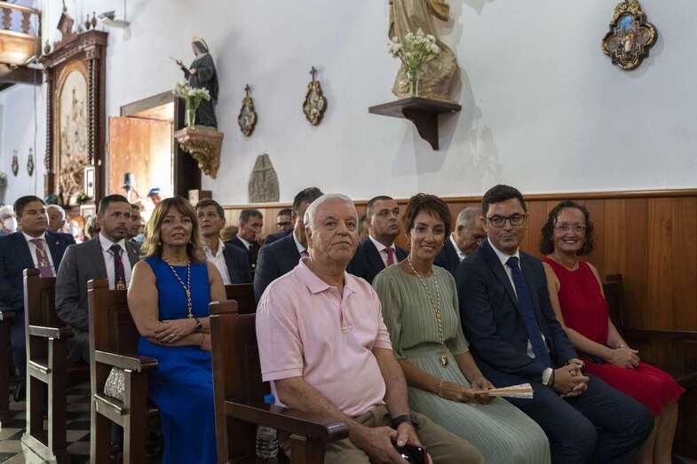 En esta celebración, presidida por el obispo auxiliar de la Diócesis de Canarias, monseñor Cristóbal Déniz, además de los moganeros, han asistido múltiples cargos políticos de Canarias en compañía de la alcaldesa de Mogán, Onalia Bueno, los concejales de gobierno y oposición, y el pregonero de esta edición de las Fiestas Patronales, Expedito Oliva.