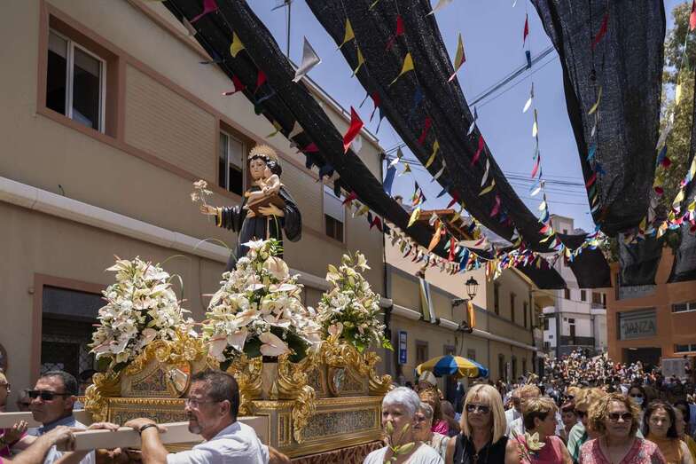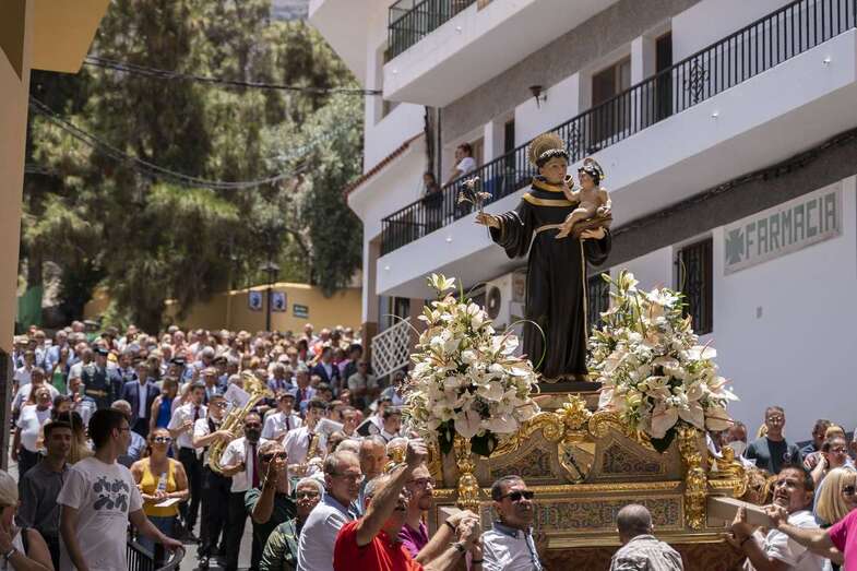 El patrón de Mogán, San Antonio de Padua o El Chico, como popularmente se le denomina en el municipio, ha celebrado su día este lunes 13 de junio con la solemne eucaristía y la procesión de la imagen del Santo por las calles del pueblo, un hecho que no se producía desde 2019 a consecuencia de la pandemia y que, debido a esto, ha despertado una fuerte emoción entre los más de 1.000 asistentes.
