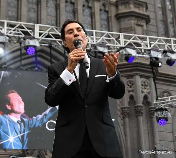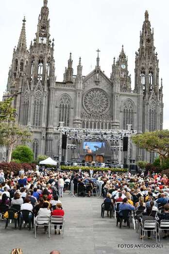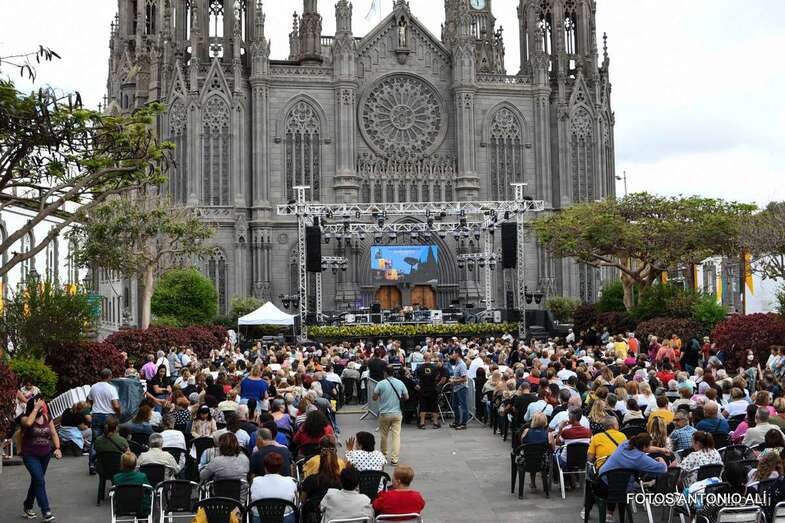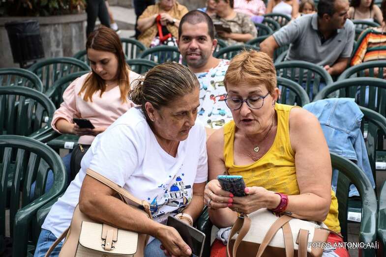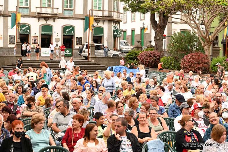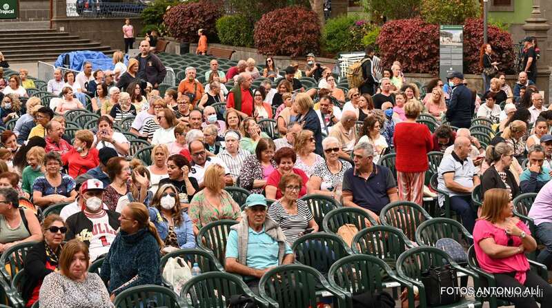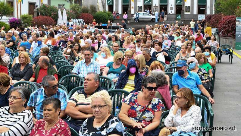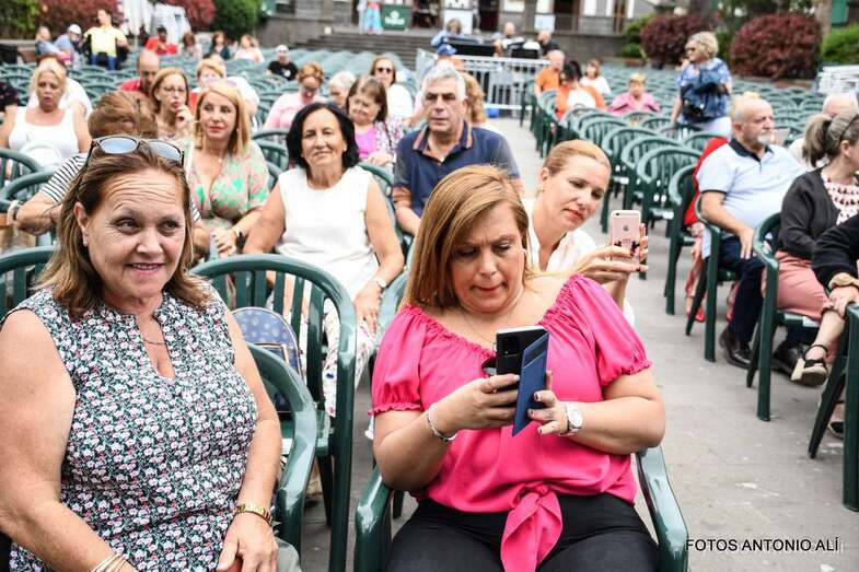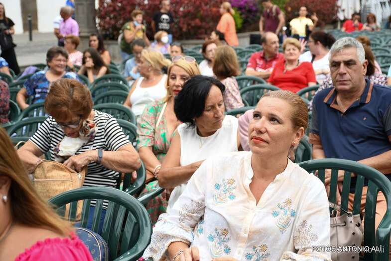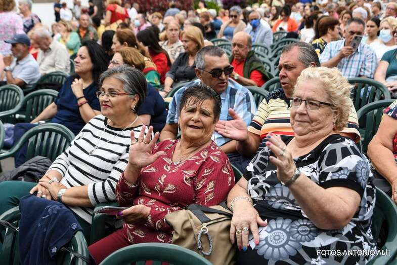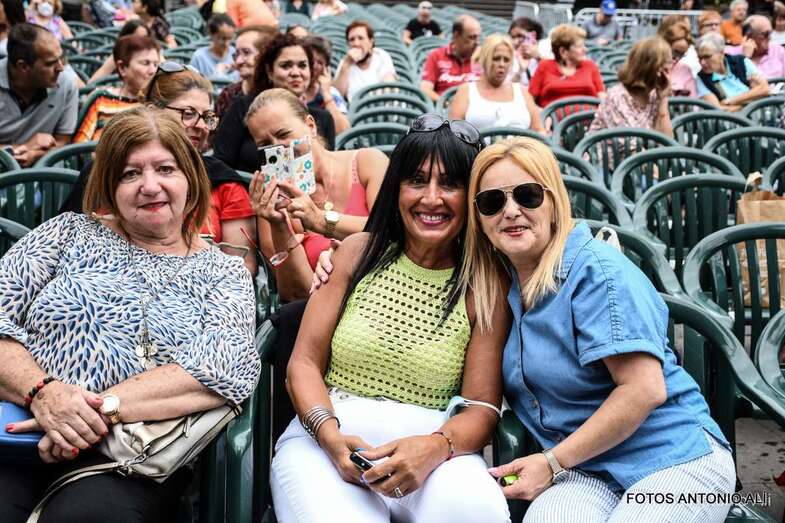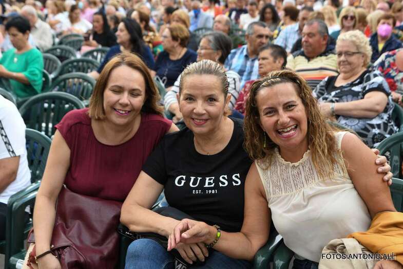 En el recinto situado en las inmediaciones del templo neogótico no cabía ni un alfiler ni tampoco en sus calles próximas, donde miles de personas de todas las edades, unas 4.000 según fuentes del Ayuntamiento aruquense, se dieron cita para no perderse el magnífico recital de José Vélez, quien en el repaso que hizo de sus composiciones más conocidas de su larga trayectoria musical demostró una vez más que está en plenas facultades vocales.