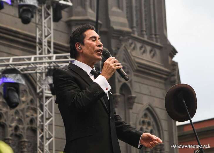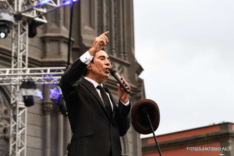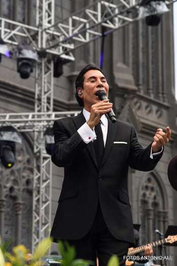 El cantante internacional teldense José Vélez petó anoche la plaza de San Juan de Arucas durante el concierto que ofreció en el marco de las fiestas patronales del municipio del norte de Gran Canaria.