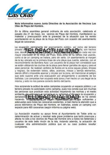 En un comunicado remitido a TELDEACTUALIDAD, Las Olas indica que “la ocupación permanente del aparcamiento público, así como del terreno privado anexo por caravanas e incluso por tiendas de campaña, son hechos que, desde hace al menos dos años, se han venido produciendo cada vez con mayor intensidad en la Hoya del Pozo”.