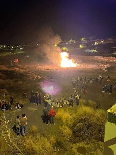 El aperitivo lo abrió pasadas las 22.30 horas un concierto del grupo grancanario Los Salvapantallas en la plaza de San Juan, que congregó a cientos de personas, mientras en el cauce del Barranco Real de Telde, a la altura del puente de los Siete Ojos, ardía una enorme hoguera y en las playas muchas personas se daban cita con la tradición de bañarse en el mar o arrojar flores o papeles con sus deseos.