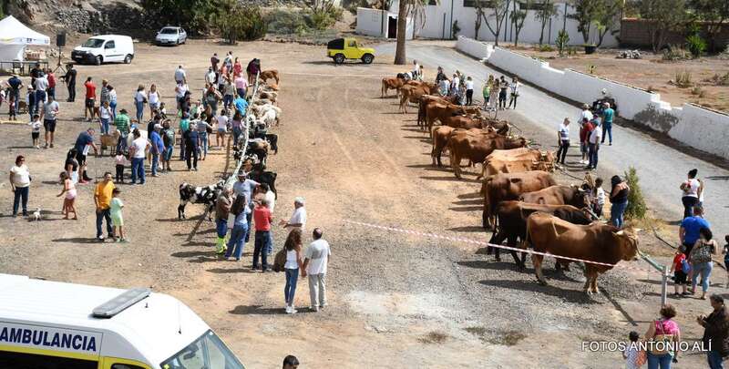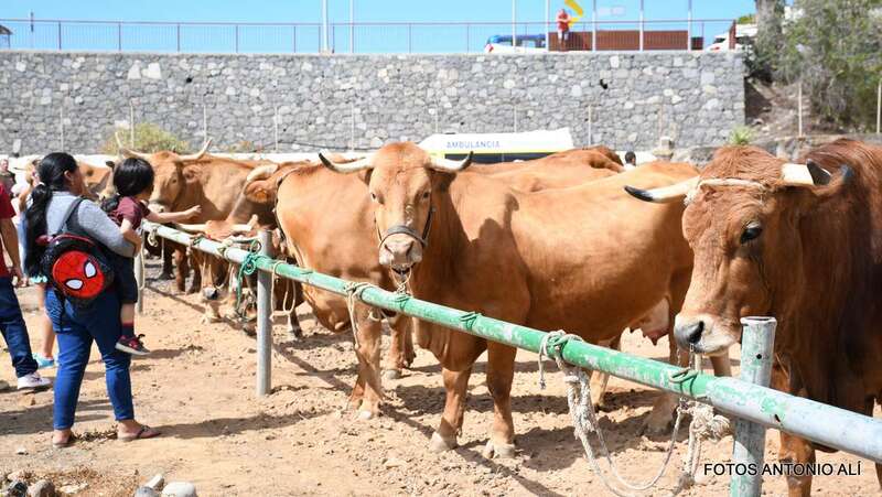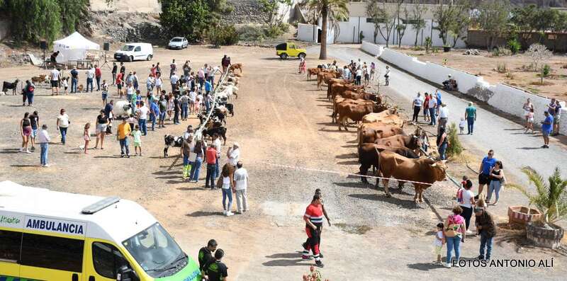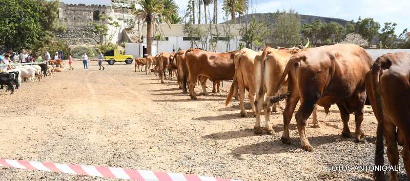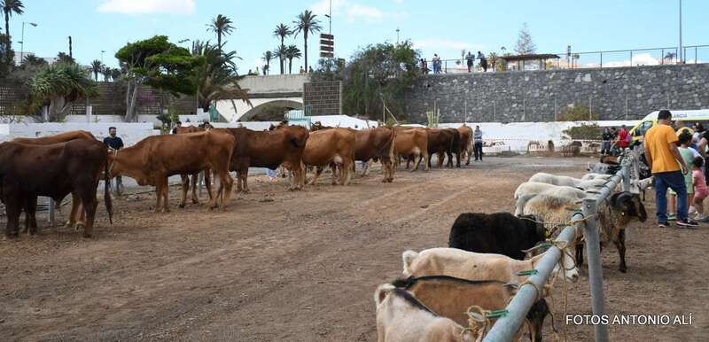 Uno de los atractivos de la jornada festiva en Telde fue la muestra de ganado que se celebraba por primera vez en las instalaciones del antiguo vivero municipal, junto al puente de los Siete Ojos del Barranco Real.