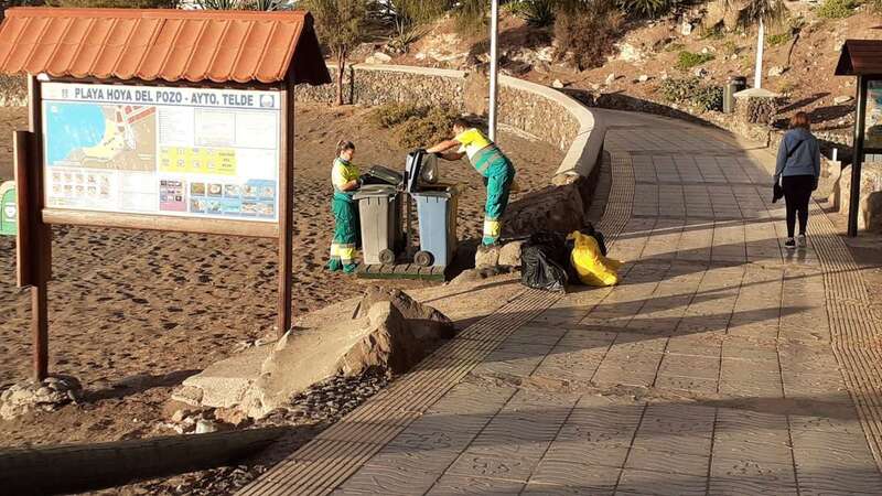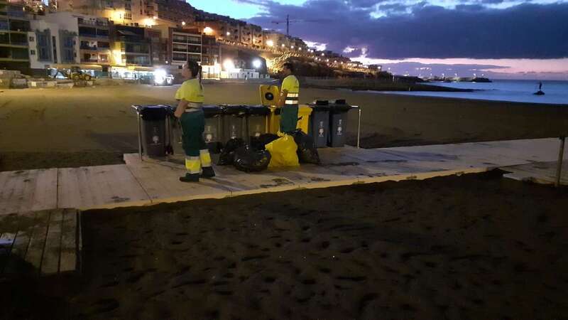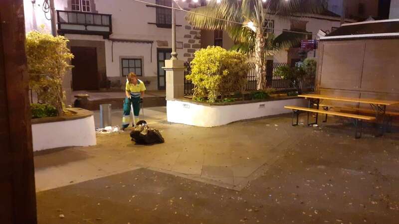 La Concejalía de Limpieza, que dirige Eloy Santana, desplegó en la madrugada de este viernes festivo en Telde un dispositivo extraordinario para adecentar el casco histórico de San Juan y también las playas, que estará operativo hasta el próximo domingo. Retiró cientos de kilos de residuos.