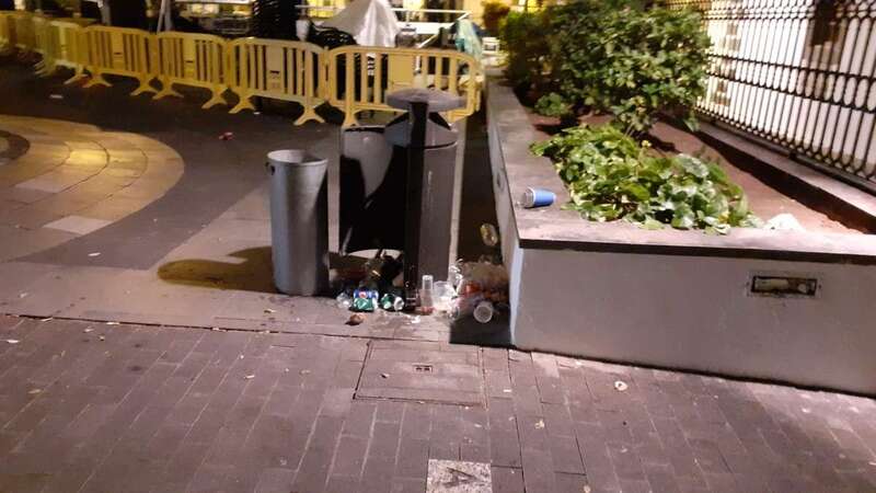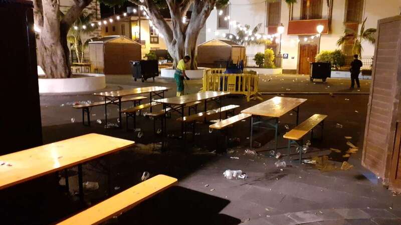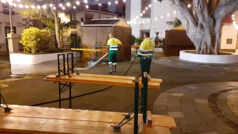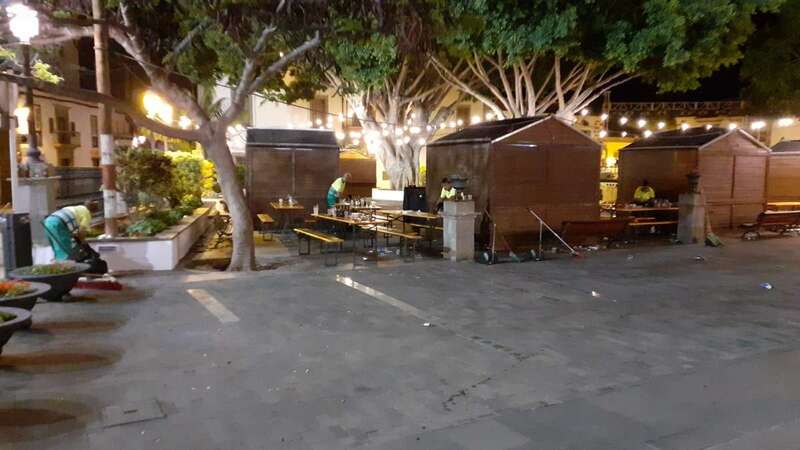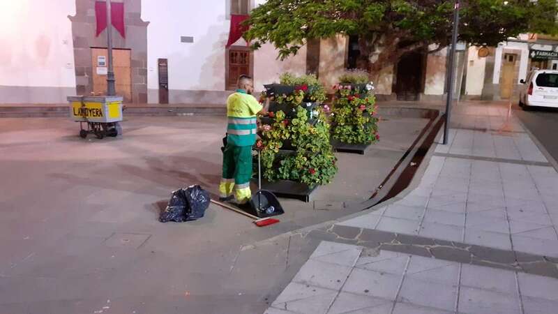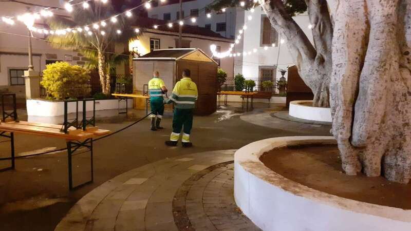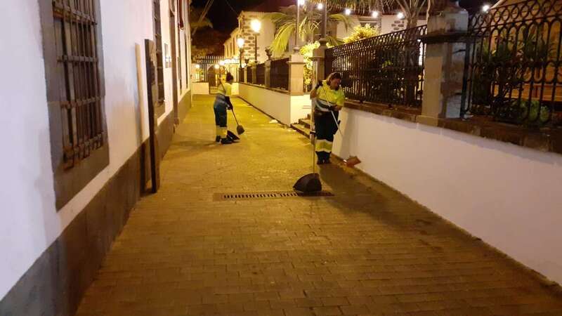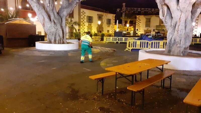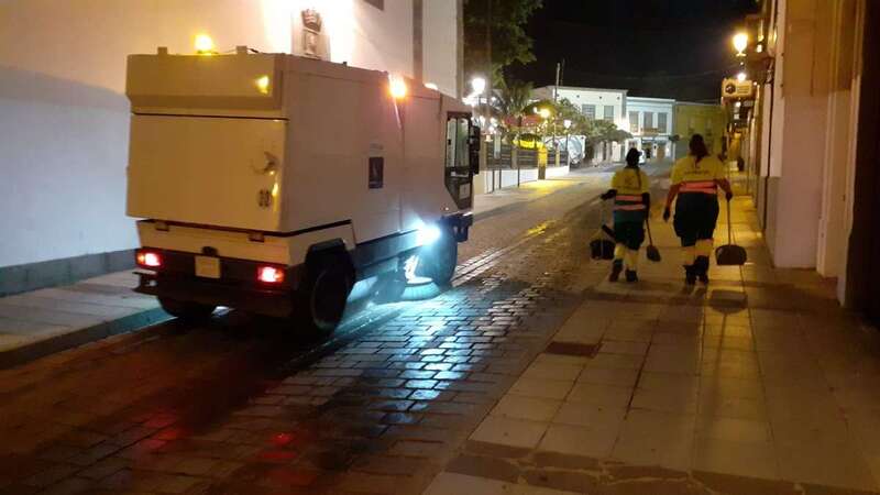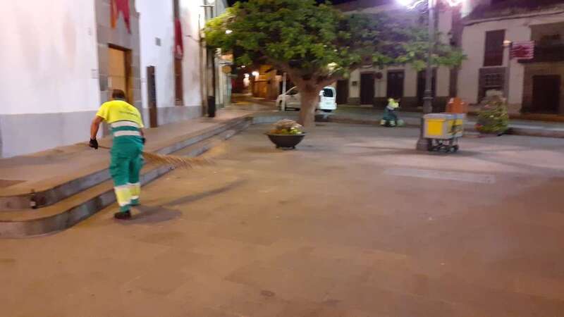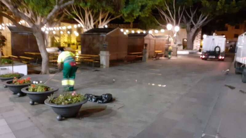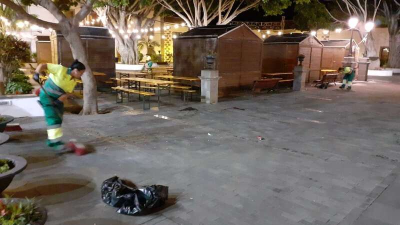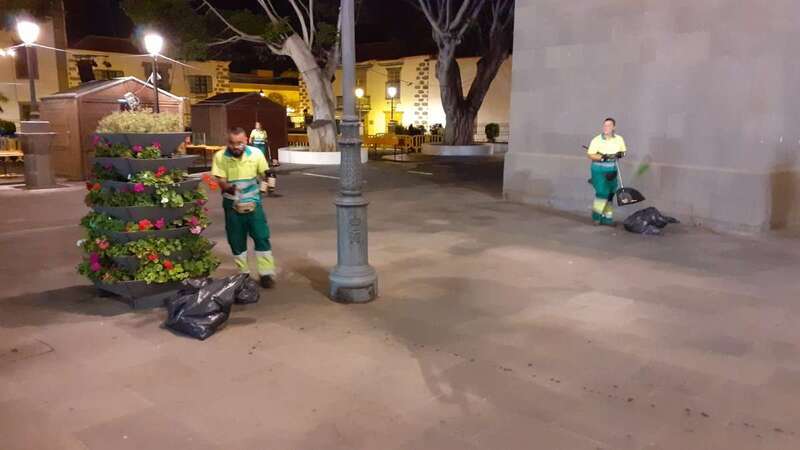 Este dispositivo se encargó esta madrugada del vaciado de papeleras, limpieza y barrido de plazas y calles, recogida de trastos y enseres, y el baldeo de la plaza San Juan y el Rincón Placido Fleitas, entre otras zonas.