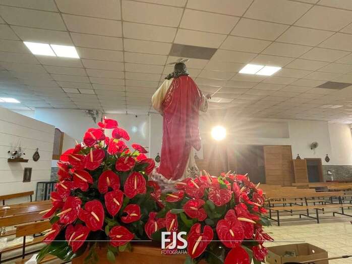 El trono lucirá una cuidada ornamentación floral, obra del diseñador teldense Segundo Amador, que enlaza anturios rojos con hojas filodendro combinadas con hojas de eucaliptos.