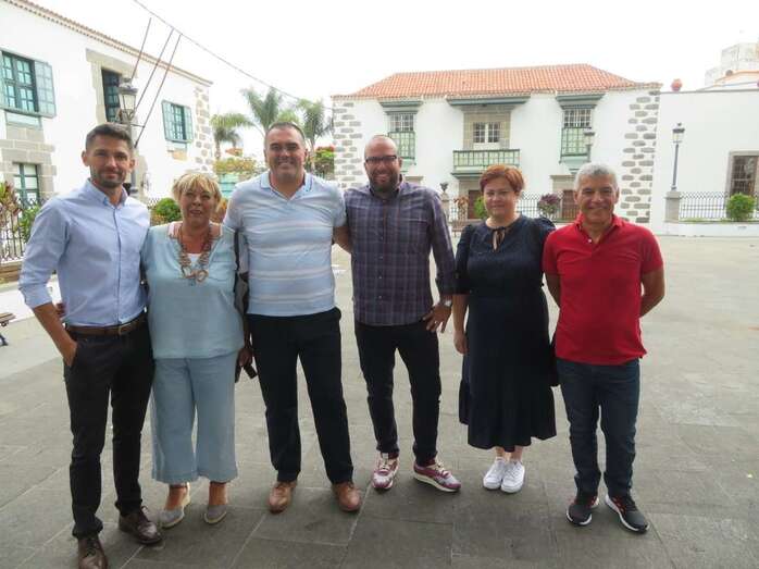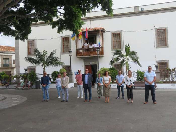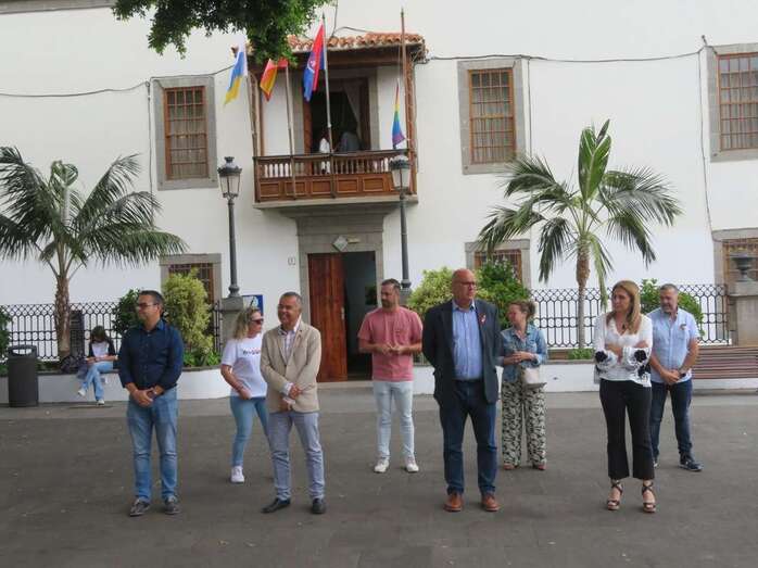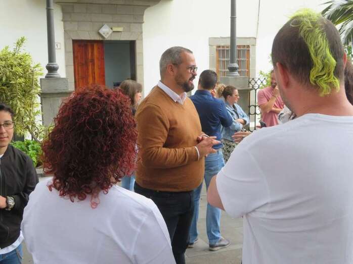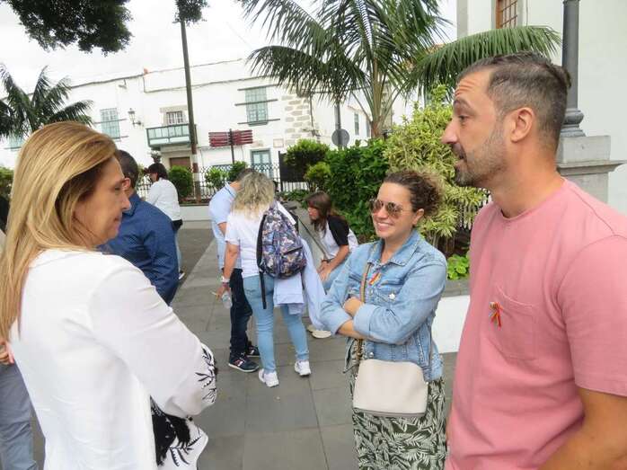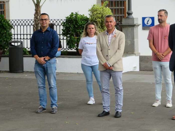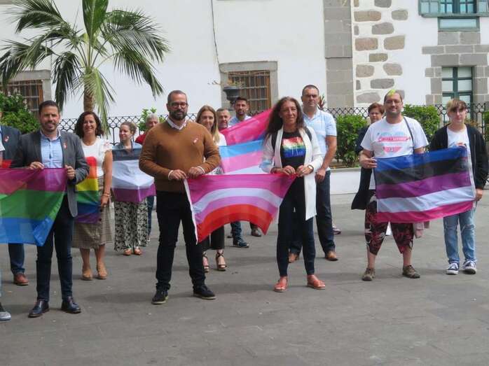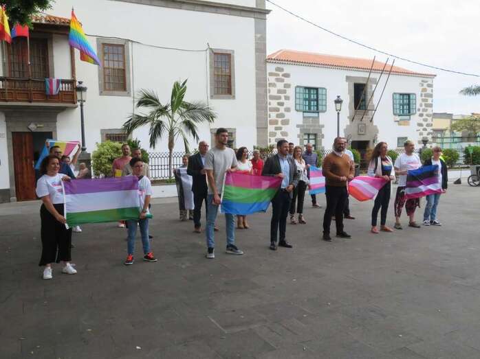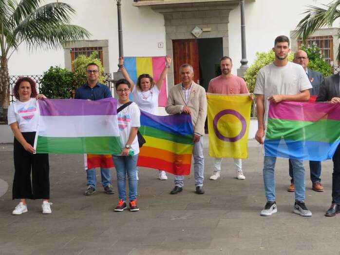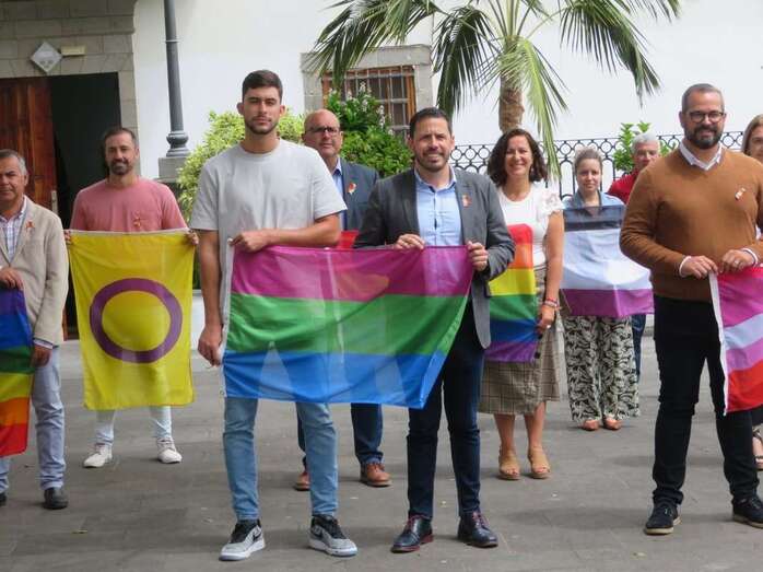 La bandera arcoíris ya ondea en el balcón de las Casas Consistoriales de Telde, en la plaza de San Juan, tras un acto en el que participaron el concejal de Políticas de Igualdad, Jonay López, y el vicealcalde Héctor Suárez, junto a otros miembros de la Corporación local y representantes de Gamá, Chrysallis Canarias, Equal LGTBIQ+ y Aranda LGTBIQ+.
