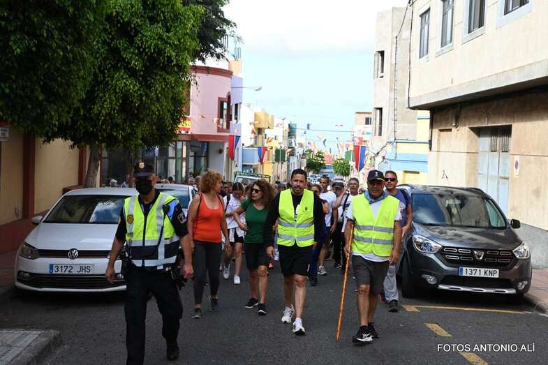 Suspendida en los últimos años por la pandemia, esta tarde se recuperó la caminta y, así, la comitiva de peregrinos, integrada por algo más de medio centenar de personas y que contó con el acompañamiento del vicealcalde Héctor Suárez, emprendió la marcha pasadas las 18.00 horas e hizo el recorrido habitual: Lomo Cementerio, antigua carretera del sur hasta el cruce de Cuatro Puertas y bajar por El Goro hasta el templo de Ojos de Garza donde se venera Santa Rita de Casia, cerca del aeropuerto grancanario y de la autovía GC-1.