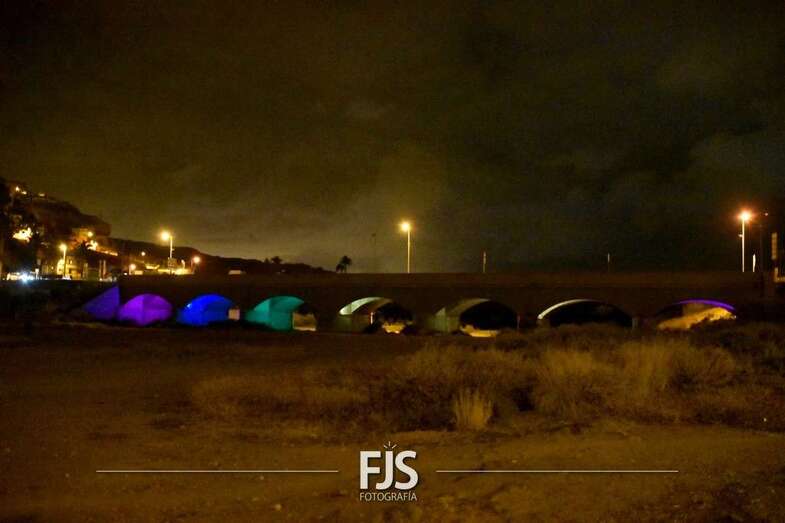 El Ayuntamiento de Telde iluminó anoche el puente de los Siete Ojos sobre el Barranco Real con los colores del arcoíris. Permanecerá encendido hasta el 9 de julio como muestra de una ciudad diversa, libre e imparable ante el orgullo de la ciudadanía.