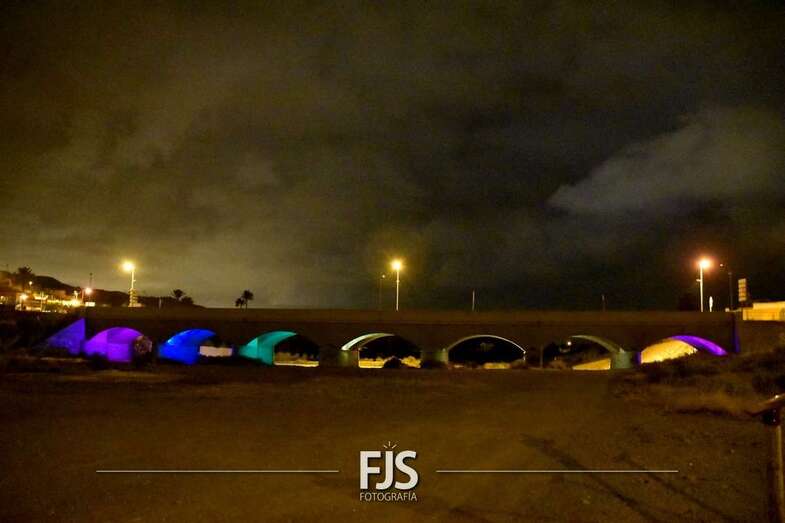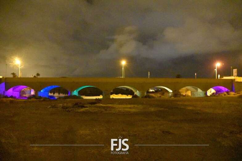 El puente de los Siete Ojos, orgullo de Telde, se torna multicolor