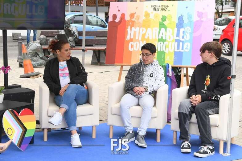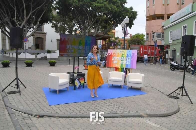 La cita se desarrolló en formato entrevista, guiada por la periodista Alicia Suárez, y desde las 11.00 horas pasaron por el set personas relevantes dentro del movimiento LGTBIQ+ con el objetivo de compartir experiencias que sirvan de ayuda a la sociedad. A este espacio acudieron también la alcaldesa de Telde, Carmen Hernández, el concejal de Igualdad, Jonay López, y la edil de Desarrollo Local, Lidia Mejías.