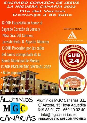 El barrio teldense de La Higuera Canaria celebra este fin de semana las fiestas en honor de su patrono, el Sagrado Corazón de Jesús. Y lo hará concentrando la programación en una única jornada festiva, la del domingo 3 de julio, con actos religiosos y el Día del Vecino.