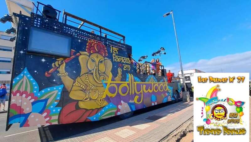 La carroza de Telde Las famosas de Bollywood, que atesora 20 años de asistencia a los carnavales de Gran Canaria, recibió este sábado el tercer premio del concurso de carrozas del Carnaval capitalino.