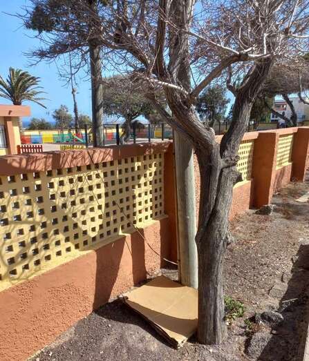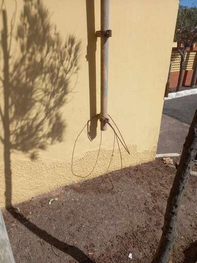 Pero además, los tensores de los postes que soportan el tendido eléctrico están partidos del óxido, sueltos o faltos de relleno, "con peligro de que llegue un temporal un día y caigan para dentro del colegio, rompiendo el muro y ni dios lo quiera matando a algún niño", se lamenta este residente.