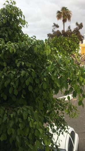 Una vecina de Salinetas, Anna Flavia Sorbi, lleva seis meses reclamando a la Concejalía de Parques y Jardines del Ayuntamiento de Telde que pode dos árboles, dos ficus, que le tapan las ventanas de su casa.