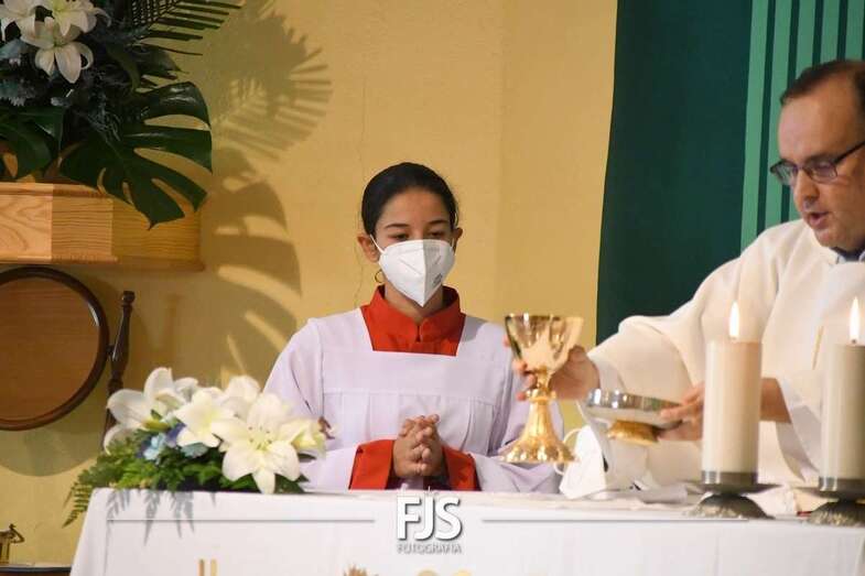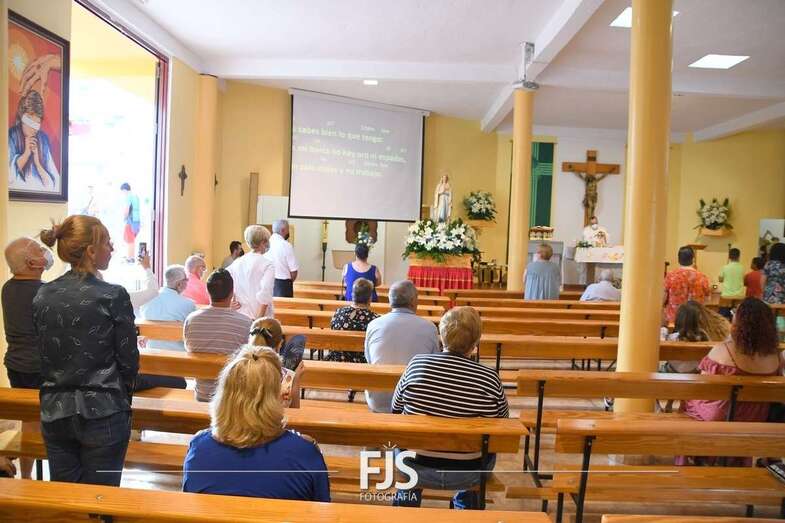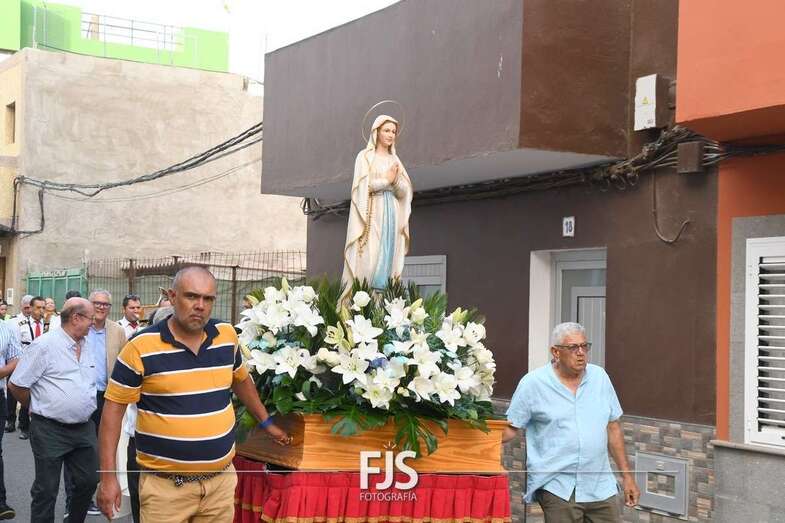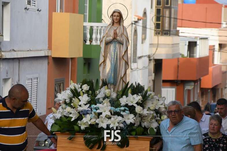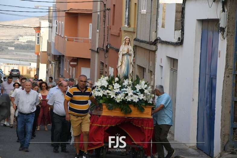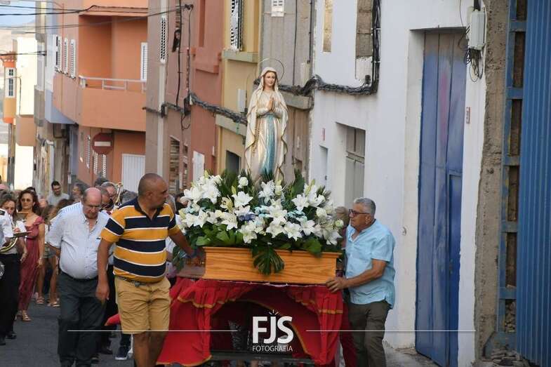 A las 19.00 horas, en el templo de El Goro, el párroco de la zona, Benjamín Ramírez, ofició una misa a la que siguió la procesión religiosa de la imagen de la patrona por las calles del barrio con el acompañamiento de feligreses, Banda Municipal de Música y de los concejales del Ayuntamiento, Jonay López y Sergio Suárez.