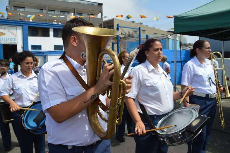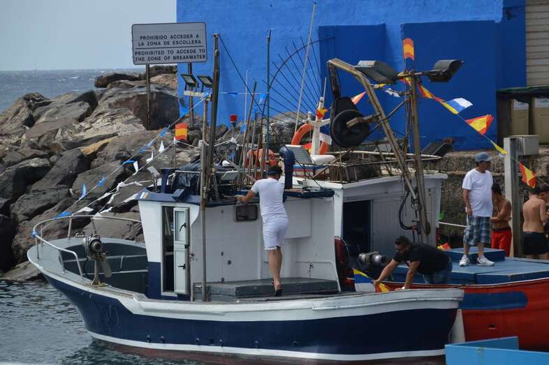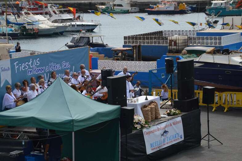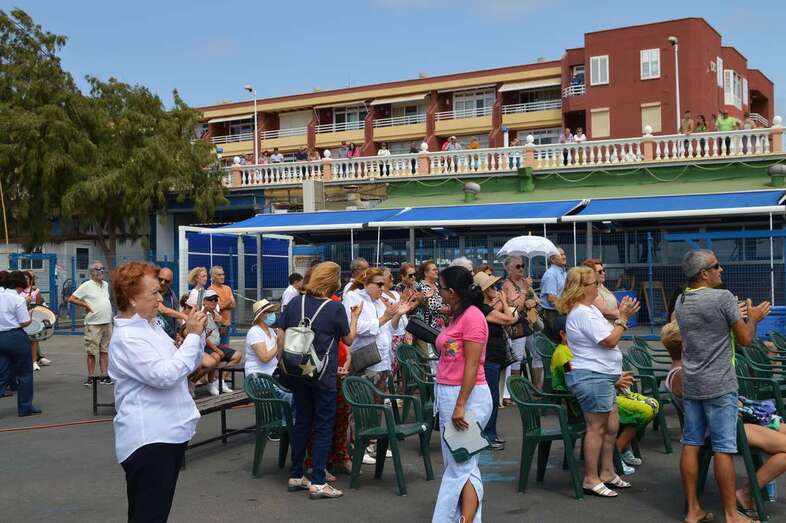 La jornada festiva continuó con un asadero popular gentileza de la Cooperativa de Pescadores de Melenara, que aportaron unos 1.500 kilos de sardinas y caballas, y por la tarde, de 15.00 a 19.30 la verbena del solajero a cargo del grupo Guiniguada Band.