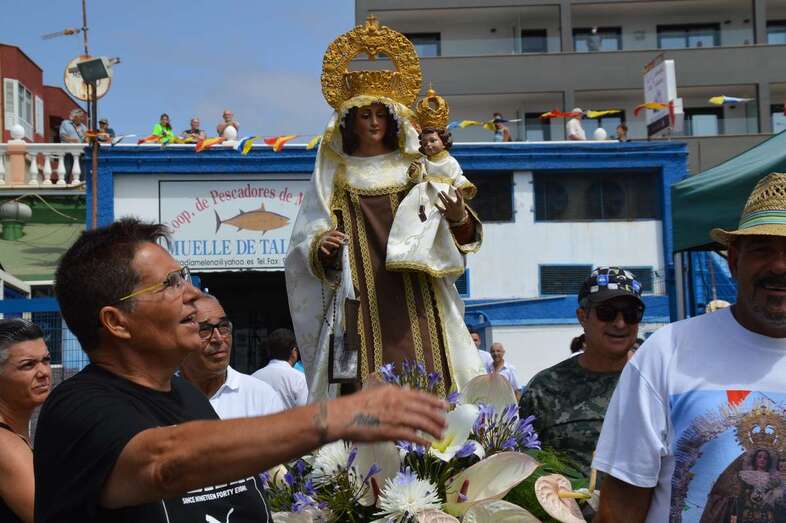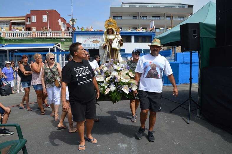 Después de dos años de parón por la pandemia de coronavirus, el enclave costero de Taliarte disfrutó este domingo del día grande de sus fiestas en honor de la Virgen del Carmen, patrona de los marineros, con la procesión marítimo-terrestre por la bahía de Melenara, con la participación de decenas de embarcaciones.