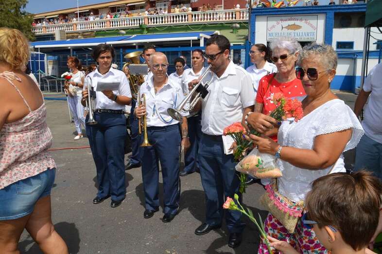 Tras un sentido cántico en la bajada al pantalán, la venerada imagen fue subida a bordo del barco Telde, del marinero Antonio Cejas Vega, a quien le correspondió por sorteo el honor de llevar a la virgen en la procesión marítima por la bahía de Melenara, en un trayecto de ida y regreso desde Taliarte a Salinetas.