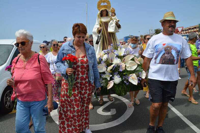 Cientos de personas acompañaron a la patrona de los marineros en el día grande las fiestas de este enclave costero de Telde