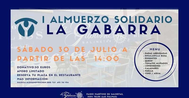 El área de Compromiso Social y Comunicación de la Fundación Canaria Yrichen ha organizada para el próximo 30 de julio, sábado, el Primer Almuerzo Solidario en el restaurante La Gabarra, ubicado en el paseo marítimo de la playa teldense de Salinetas.
