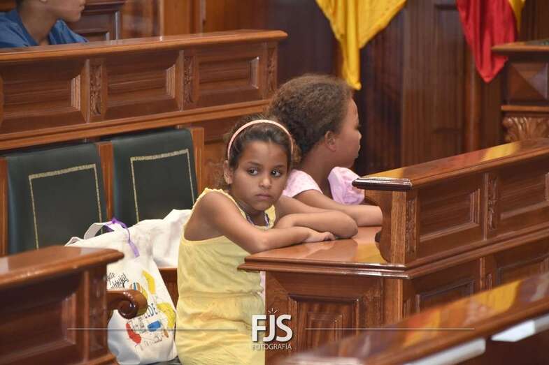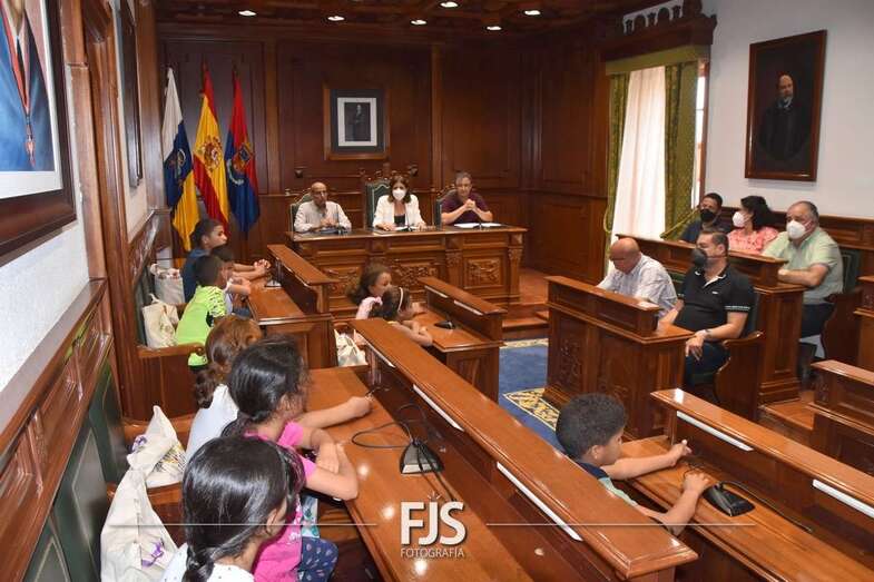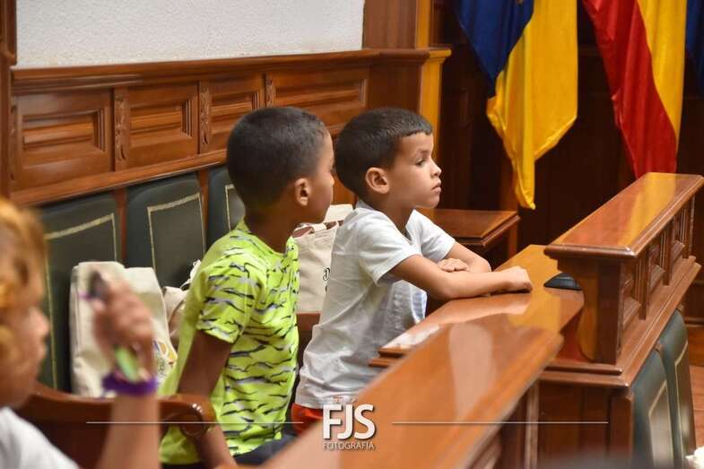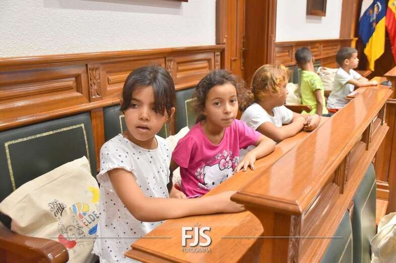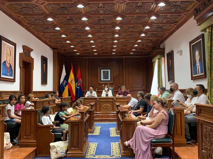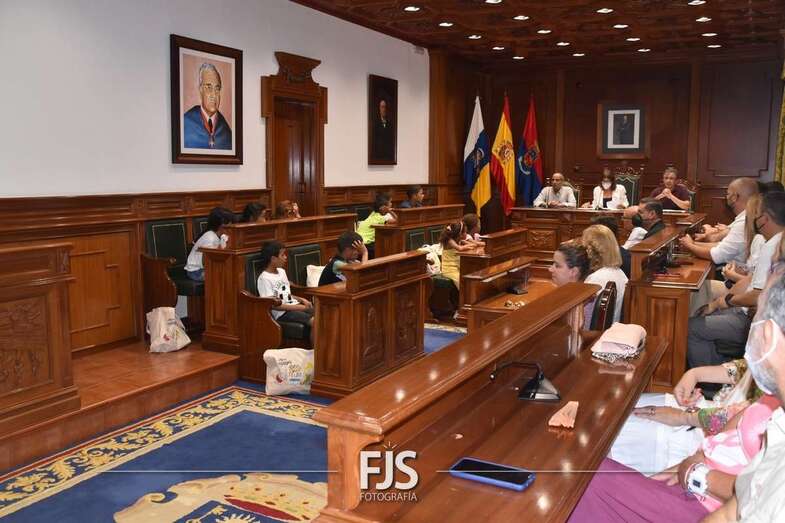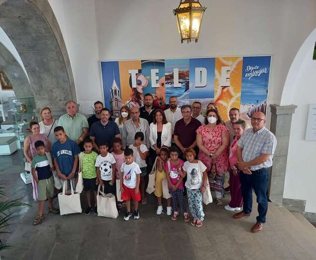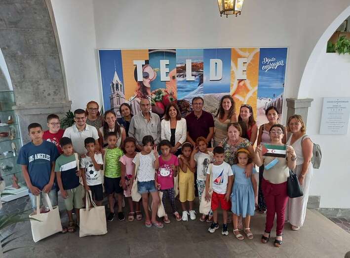 La alcaldesa de Telde, Carmen Hernández, acompañada por el concejal de Solidaridad, Juan Francisco Artiles, el subdelegado del Frente Polisario en Canarias, Mohamed Said Mohamed, y la coordinadora del proyecto Vacaciones en paz de Telde y miembro de la Asociación Canaria de Solidaridad con el Pueblo Saharaui, Goyi Marrero, recibieron en el Salón de Plenos a los pequeños y a sus familias de acogida. En el acto también participó una amplia representación de la Corporación local.