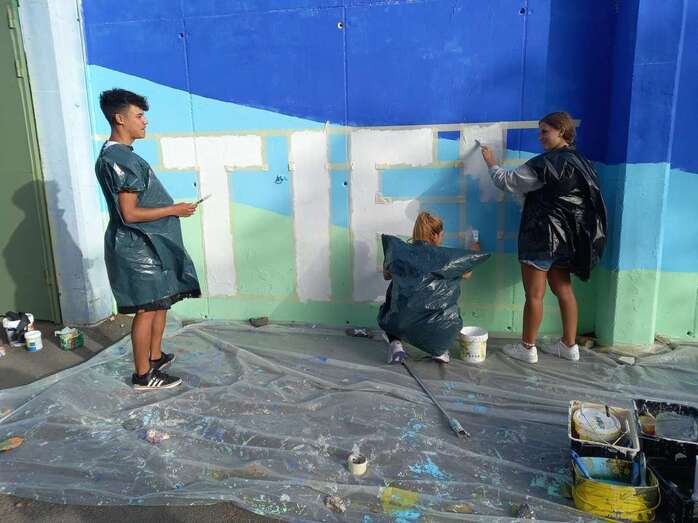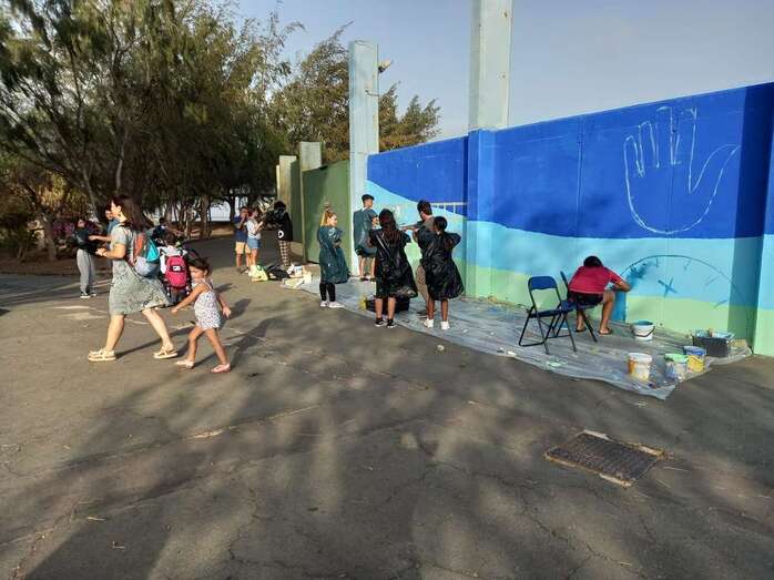 El muro perimetral del auditorio José Vélez del parque de San Juan está siendo objeto de una nueva intervención artística, esta vez de la mano de la comunidad bahá`í en colaboración con las concejalías de Parques y Jardines y Medioambiente, al igual que se hizo en el parque de La Barranquera.