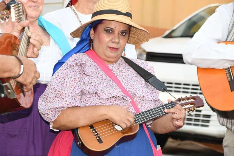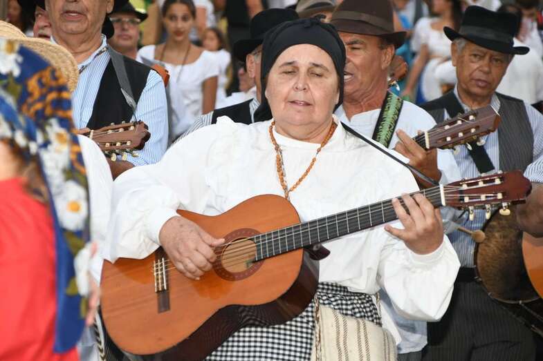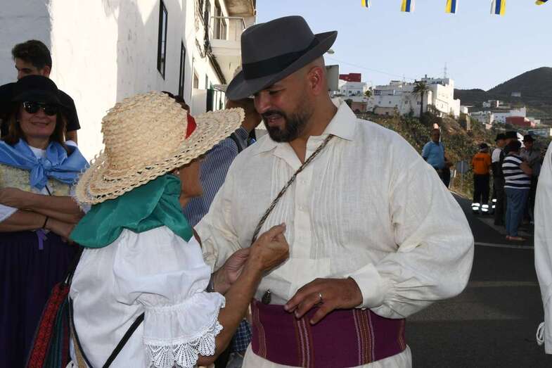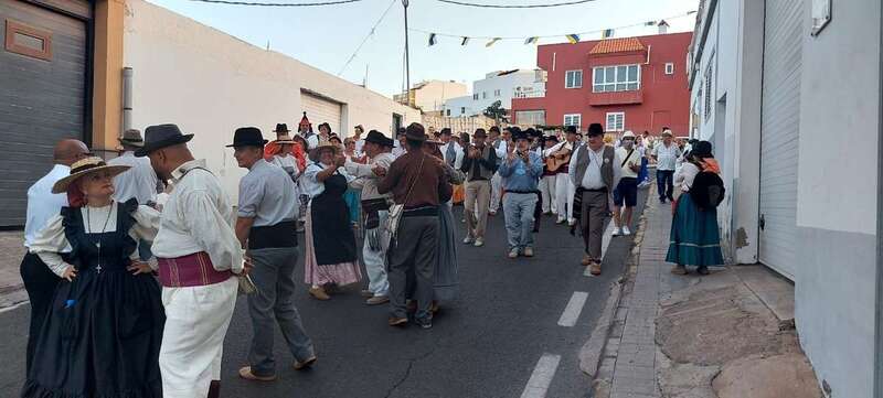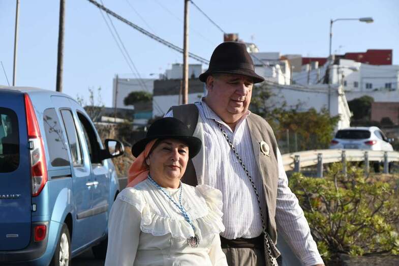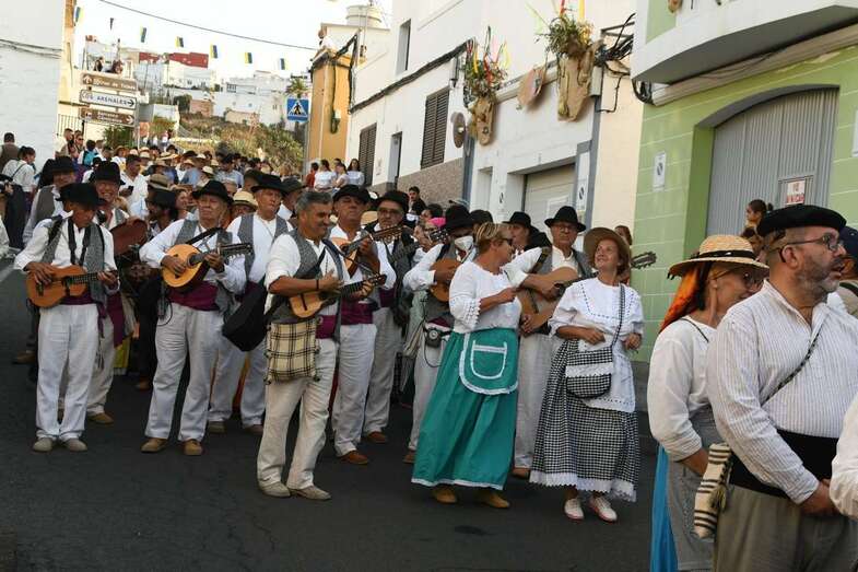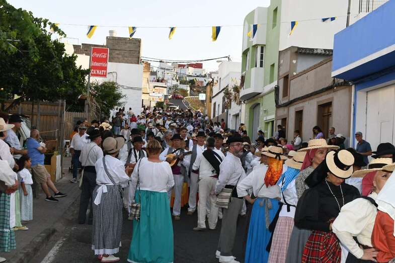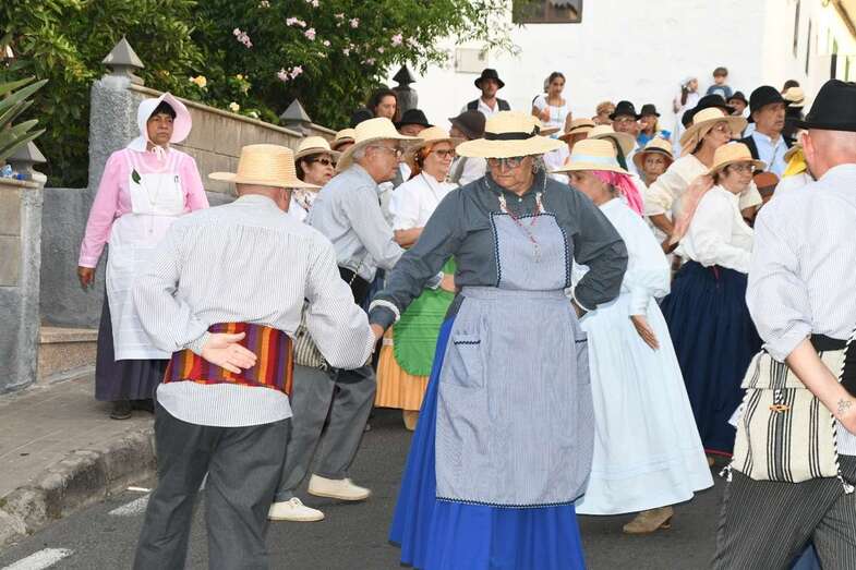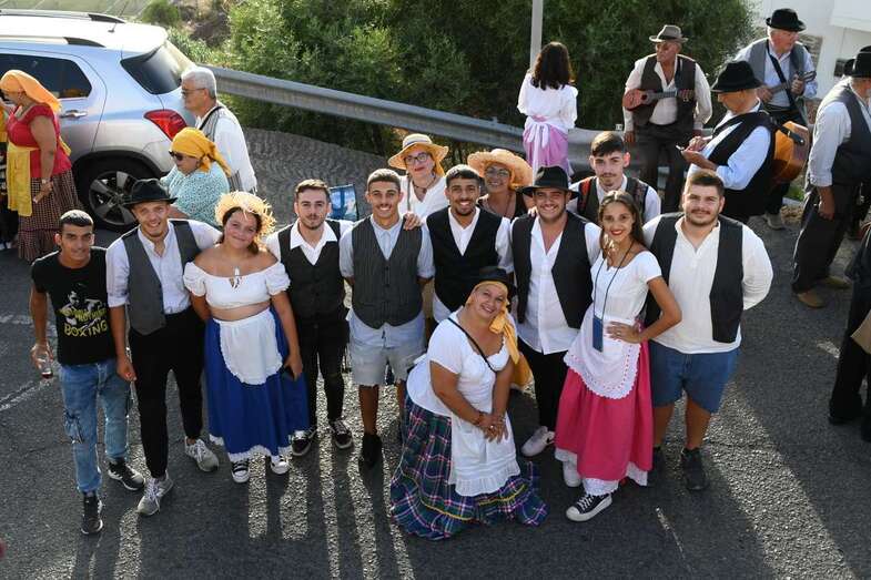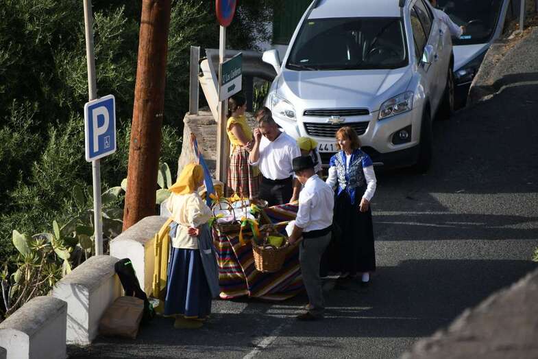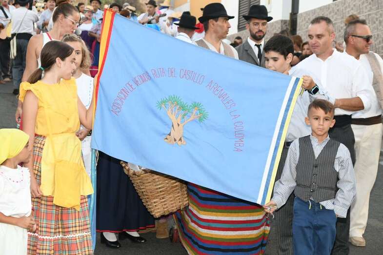 El popular desfile, amenizado por varias agrupaciones folclóricas, tuvo su punto de partida en la entrada al núcleo de Arenales y finalizaría con la ofrenda a la patrona a las puertas del templo bajo la advocación de Las Nieves.
