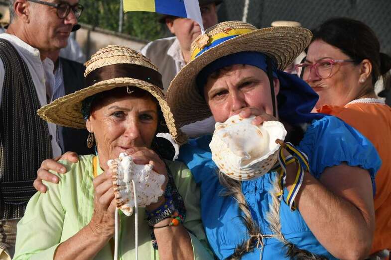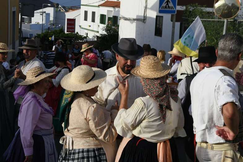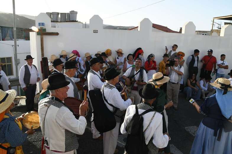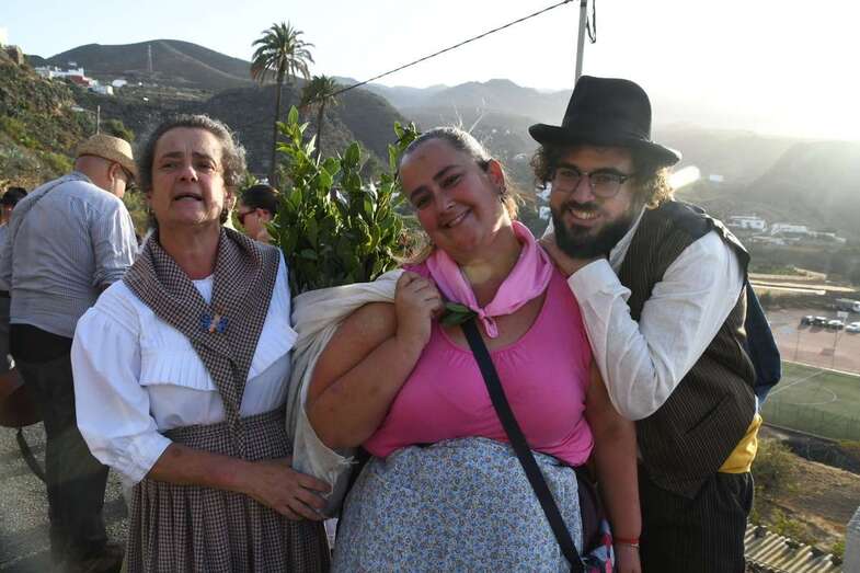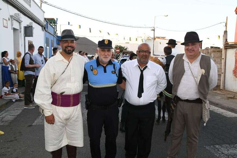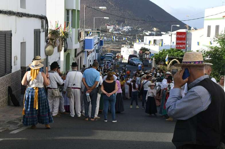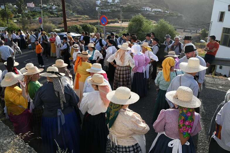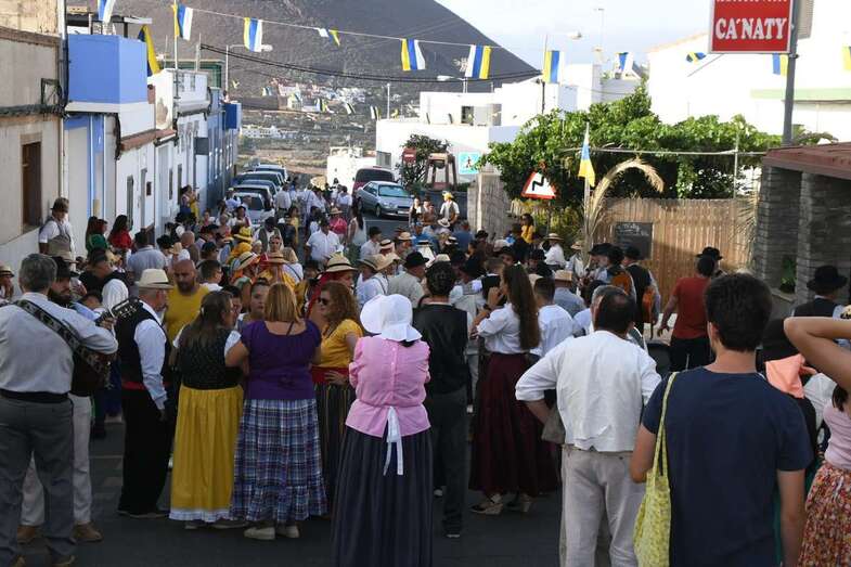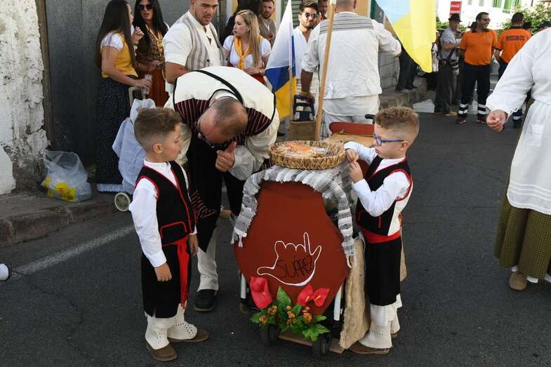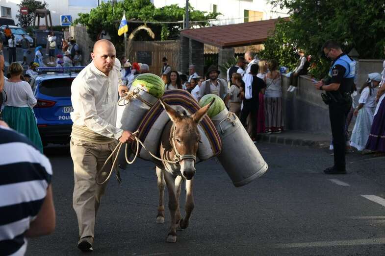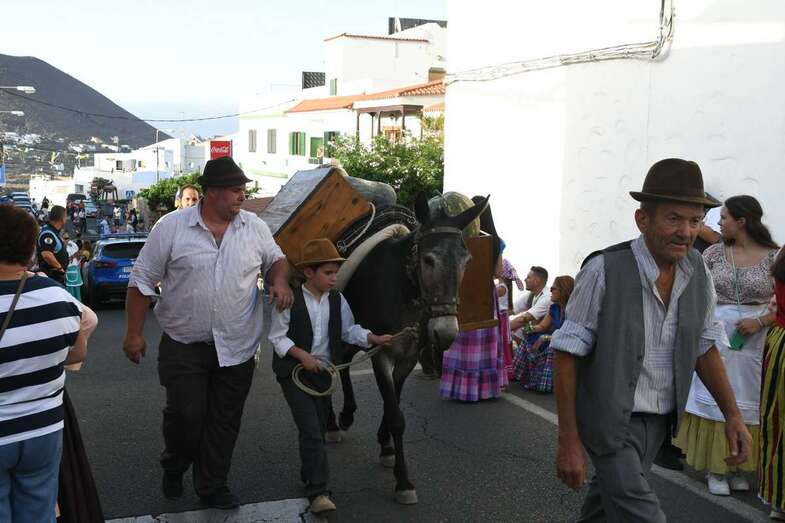 La novedad respectó a las últimas ediciones es que no hubo carretas sino once pollinos que portaron los productos de la tierra que la Parroquia de las Nieves se encargará de repartir entre las familias de zona con recursos limitados. Hay qye recordar que las carreras de burros que estaban programadas en la agenda festiva de este año de Lomo Magullo fueron suspendidas a última tras la denuncia pública efectuada por el grupo político Unidas Podemos.