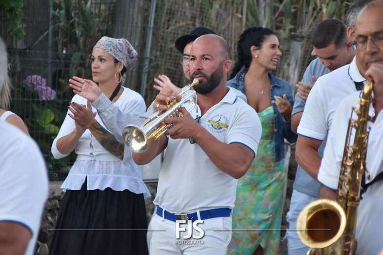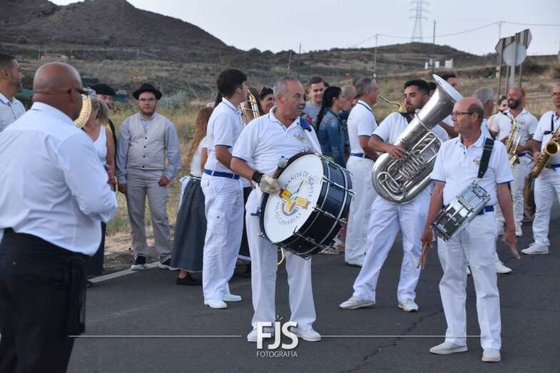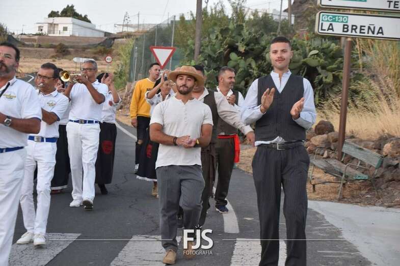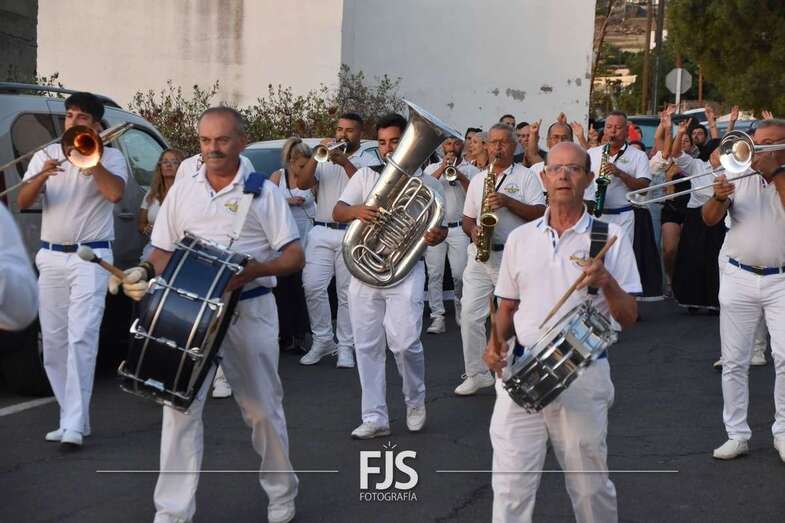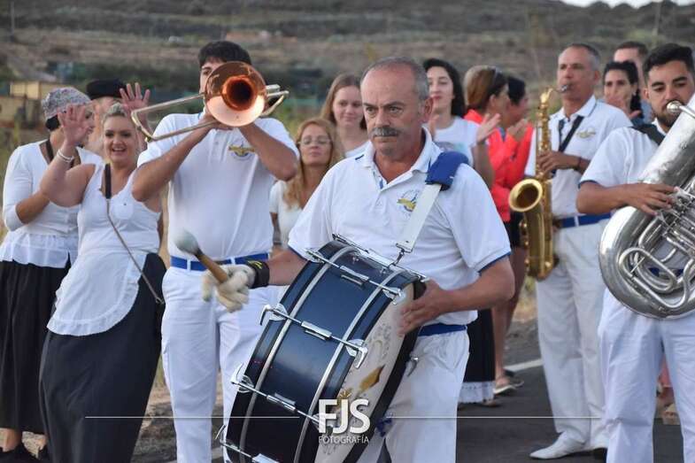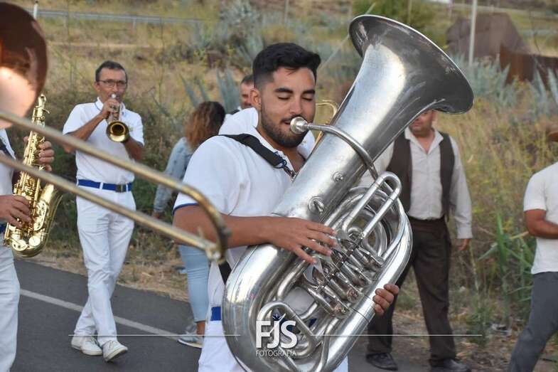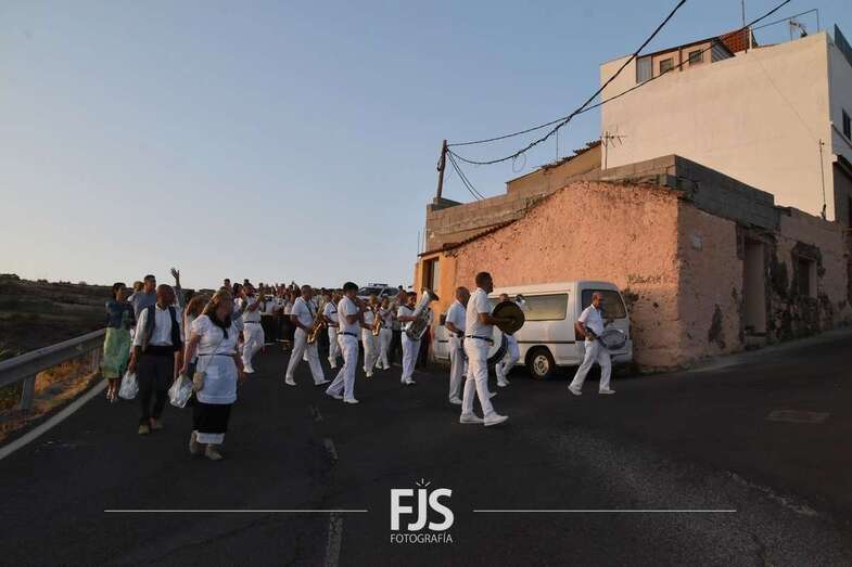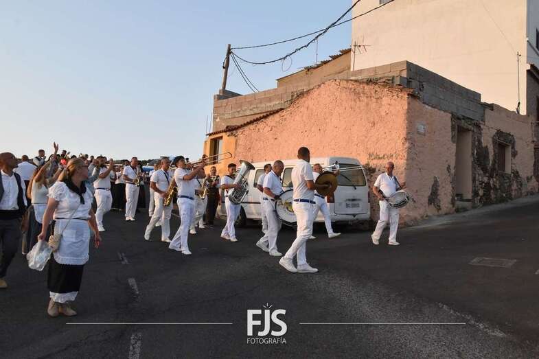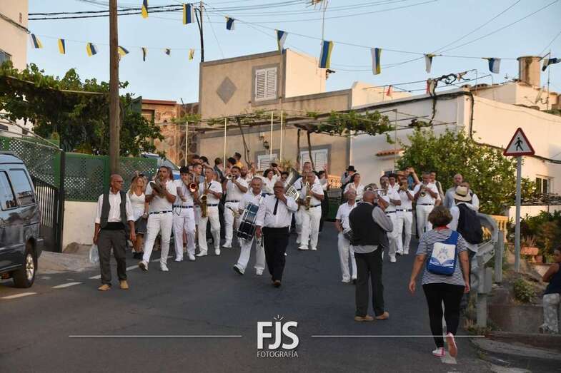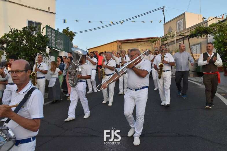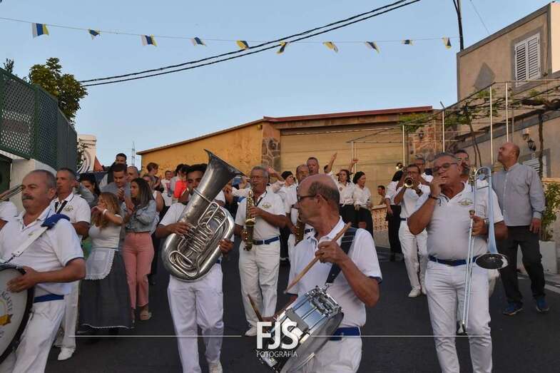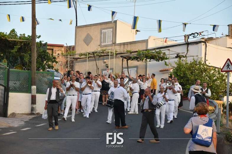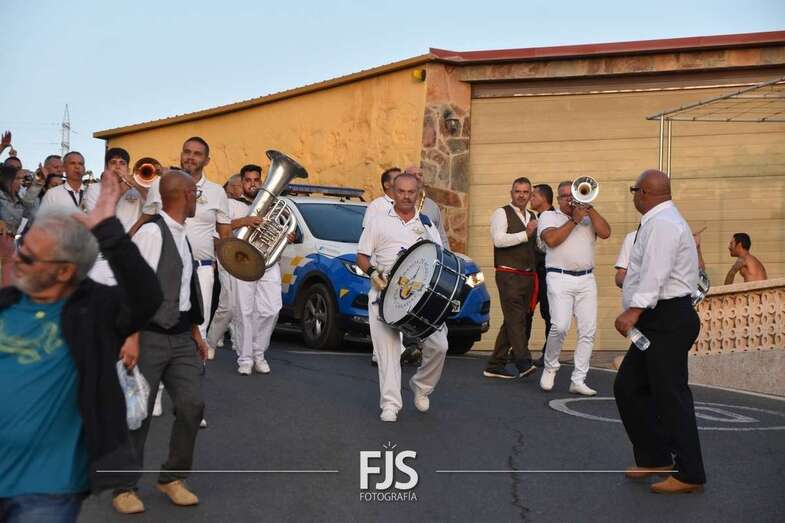 La tradicional diana floreada a cargo de la Banda de Agaete que anuncia la celebración de la Traída del Agua animó el despertar de este domingo de los vecinos de Lomo Magullo.