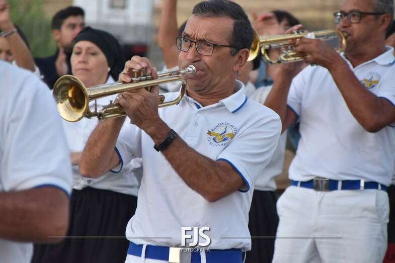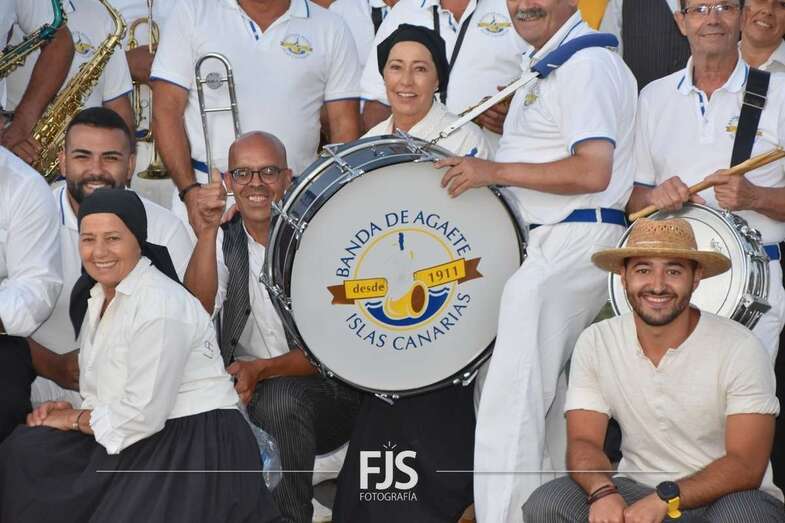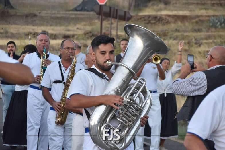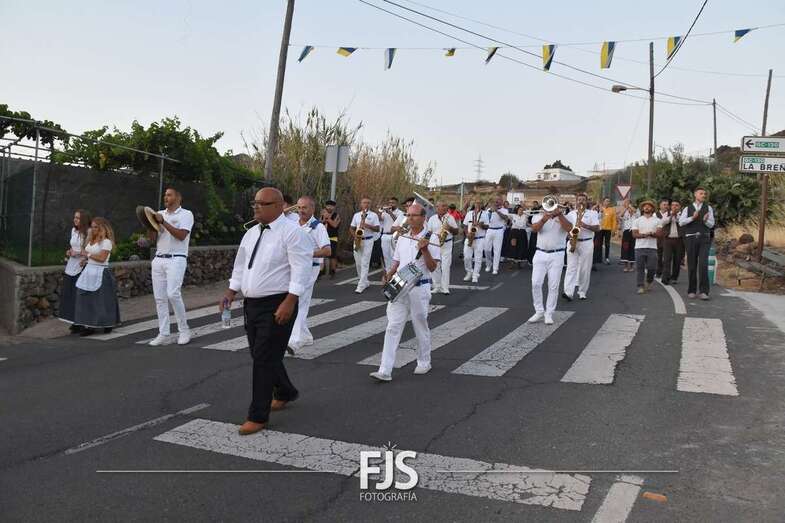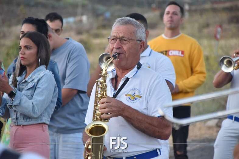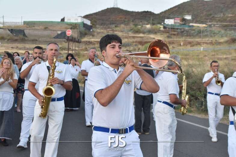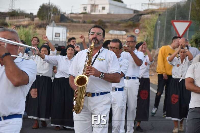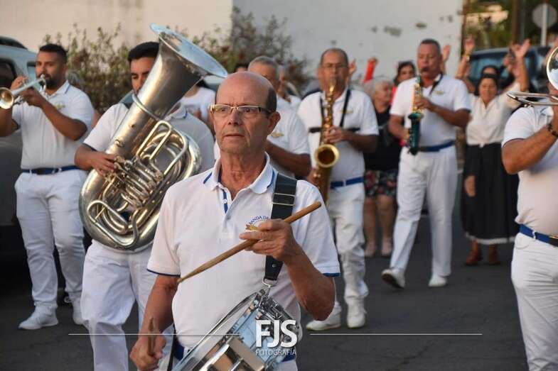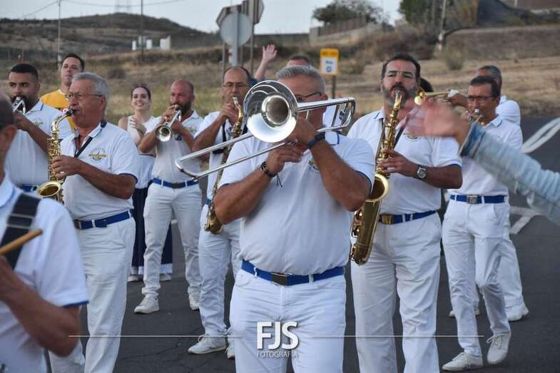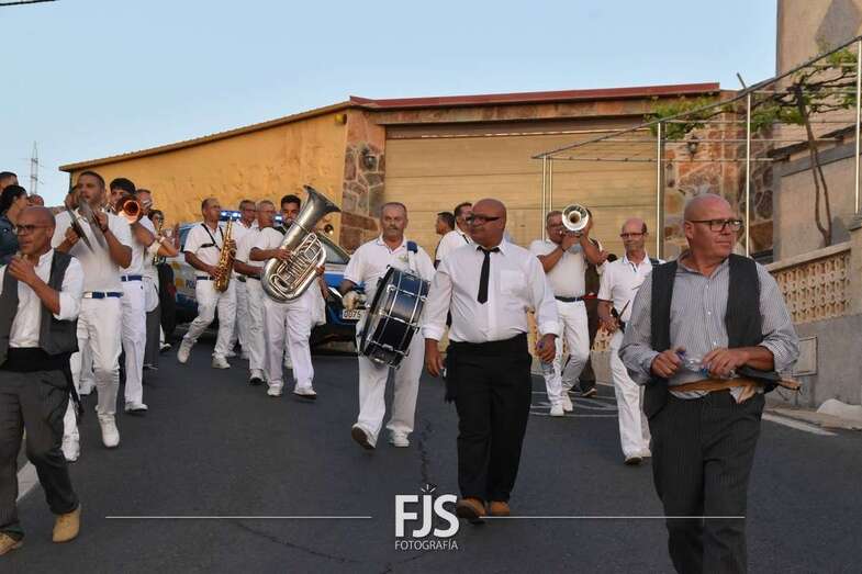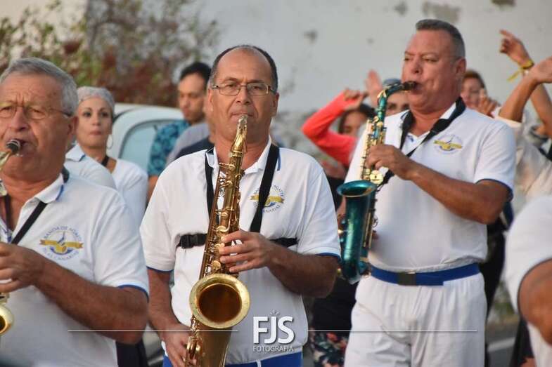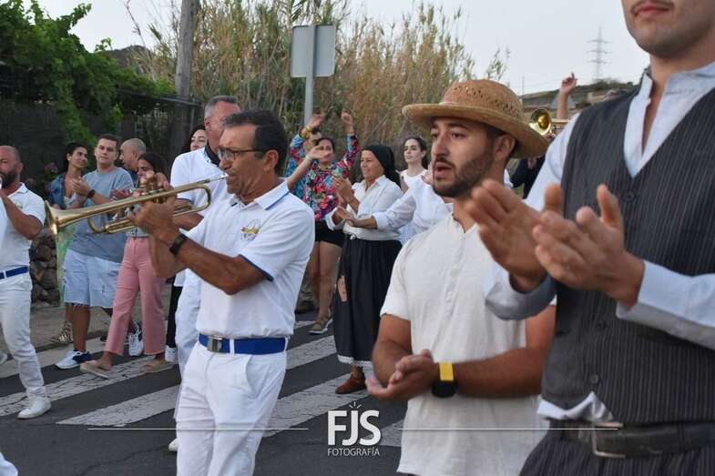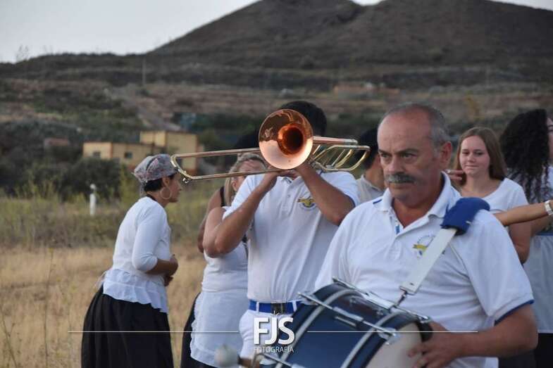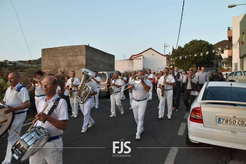 La tradicional diana floreada a cargo de la Banda de Agaete que anuncia la celebración de la Traída del Agua animó el despertar de este domingo de los vecinos de Lomo Magullo.