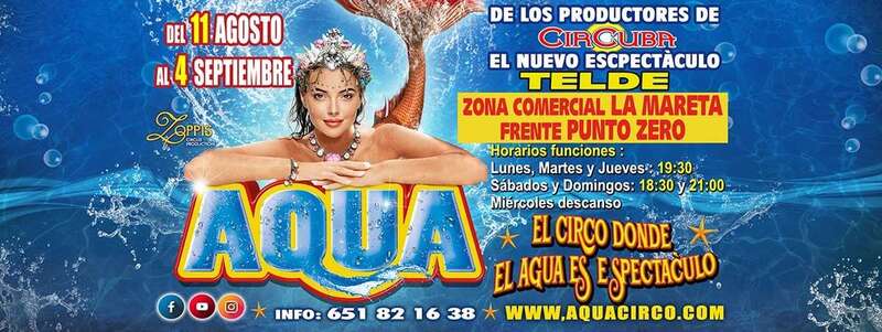 Gracias al gran éxito obtenido en Canarias, el circo Aqua está de vuelta en Gran Canaria en la que será su última estancia en el archipiélago. Desde este jueves, 11 de agosto, y hasta el 4 de septiembre, la carpa está instalada en el Parque Comercial de La Mareta (Telde), en la explanada situada delante de Leroy Merlin que es utilizada como parquin.