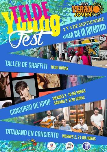 El programa Verano Joven 2022 también incluye la iniciativa Telde Young Fest que tendrá lugar en la Casa de la Juventud durante dos días. Esta propuesta contempla un concierto de Tataband el 2 de septiembre, a las 21.00 horas, además de un taller de grafiti los días 2 y 3 de septiembre, a las 10.00 horas, cuya inscripción abre este jueves.