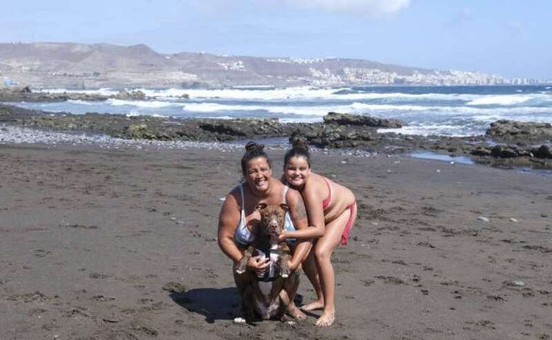 A Alcira le encanta ir a la playa con su familia: su pareja, sus dos hijos y Balú, un pitbull muy juguetón de nueve meses al que le hace feliz refrescarse en el agua del mar y correr a toda velocidad por la arena en busca de su pelota. A su dueña no le gusta dejarle en casa solo mientras ellos se lo pasan bien. Es por ello que suelen venir a esta zona, ya que «es casi el único sitio de la isla donde podemos traerle sin que nos multen o nos miren mal», cuenta.