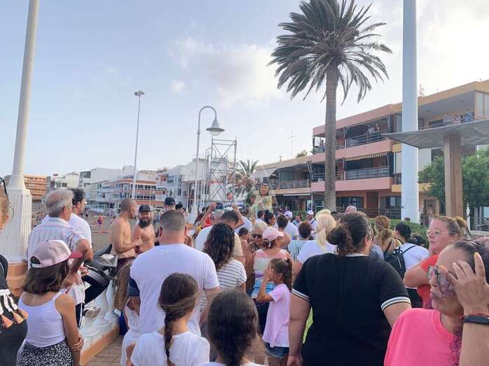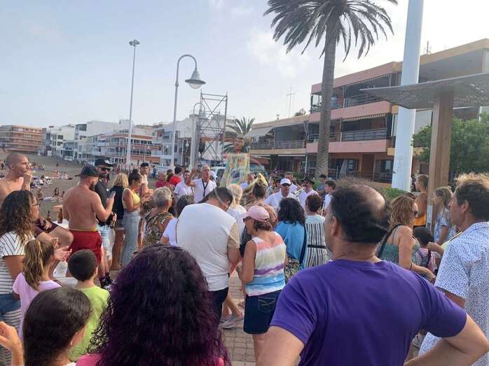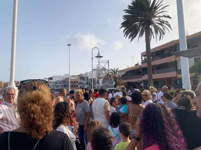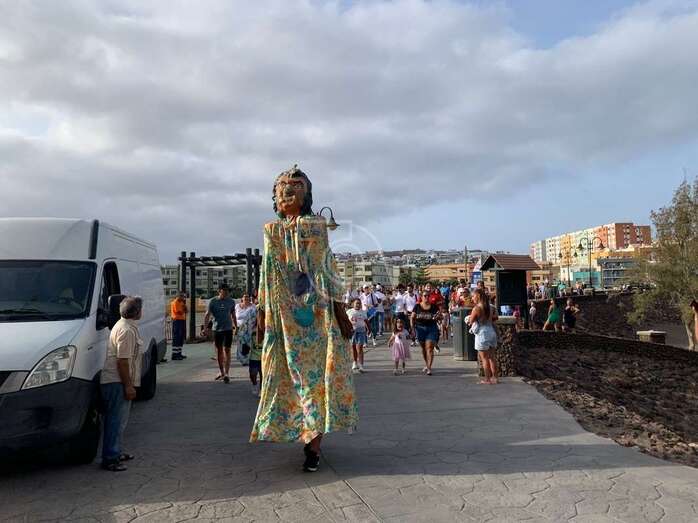 El animado desfile efectuó un recorrido por el paseo marítimo de Melenara, Clavellinas, Salinetas y Taliarte y finalizaría en la avenida de la primera playa, cerca del lugar donde se ha instalado este año el escenario de las fiestas, delante del balneario y donde a las 20.30 horas el vecino Andrés López García leerá el pregón.