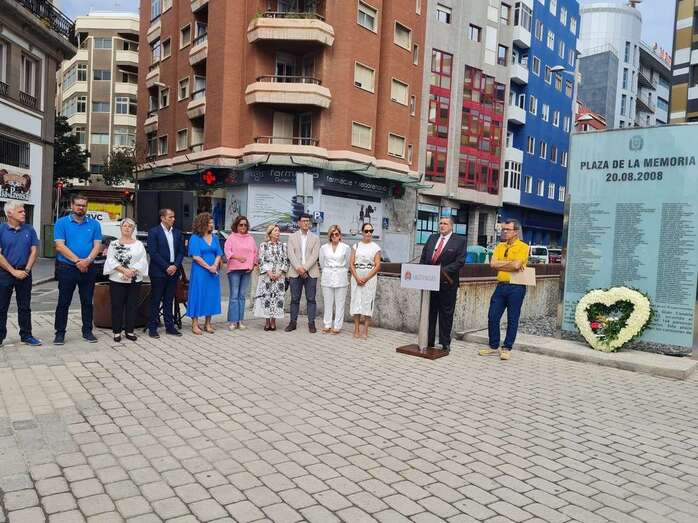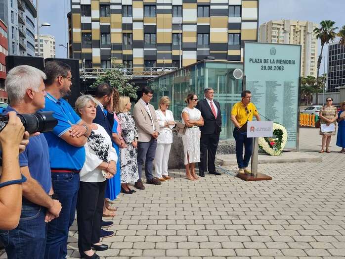 A continuación, se ha ofrecido una ofrenda floral cedida por la entidad municipal, celebrada junto al muro de cristal en el que están inscritos los nombres de las 154 personas que fallecieron aquel día, y se han leído dos poemas por familiares de las víctimas. Antes de las intervenciones de Doreste y de Sosa, se ha escuchado de forma sentida la ‘Suite para Violonchelo’ de Johann Sebastian Bach.