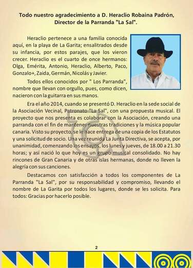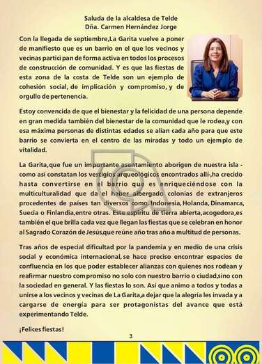 Según el programa que ultima este colectivo, los fastos arrancarán el próximo viernes 2 de septiembre con el pregón a cargo de las vecinas Inmaculada García Roque, Pinela Jiménez y Guayarmina Suárez Santana y el tradicional izado de la bandera canaria de las siete estrellas verdes en el mástil de la plaza de La Garita por Armando Vera. Tras el pregón, el colectivo La Sal entregará una placa de agradecimiento Pedro Monzón Pulido, titular de la farmacia del barrio, por las atenciones dispensadas a los vecinos durante estos años de pandemnia.