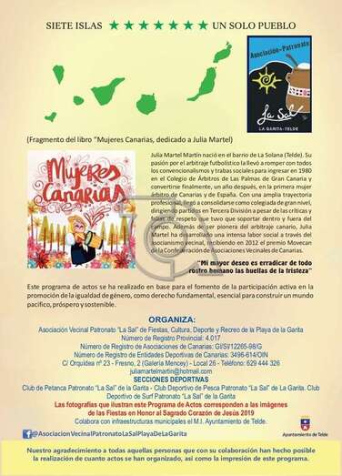 El patronato organizador ha reservado en el programa la fecha del 8 de septiembre, festivo en la isla, para el reconocimiento ciudadano a María Santana Bolaños, conocida como Lucía la pescadora. Leerá una semblanza la poetisa Paz Monzón.