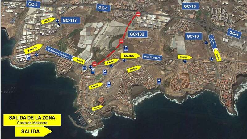 Por otro lado, se realizarán cambios de sentido y cortes de tráfico. La carretera principal, a partir del cruce de Melenara, solo podrá ser utilizada por los vehículos de emergencia, los peatones y el transporte público, por lo que estará cerrada tanto para la entrada como para la salida para el resto de vehículos.