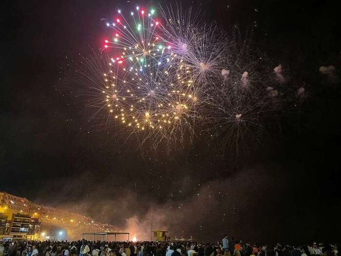 El espectáculo pirotécnico que recreó en el cielo siluetas de palmeras llenas de color y otras figuras volvió a encandilar a las miles de personas que se dieron cita en Melenara en la medianoche de este sábado, tres años después de su última celebración debido a las restricciones derivadas de la pandemia de coronavirus.