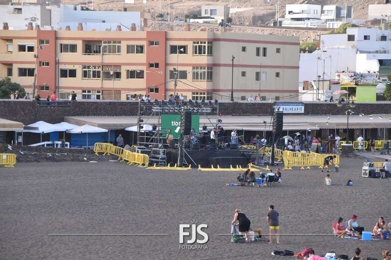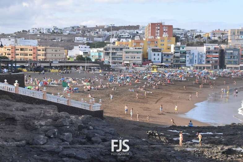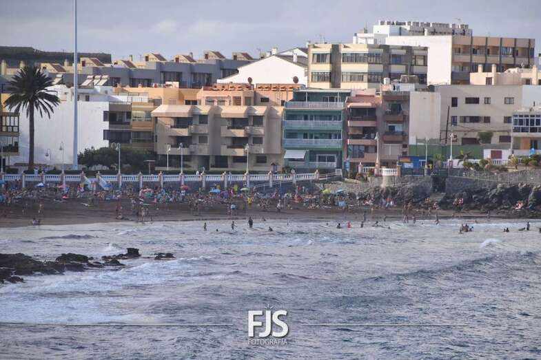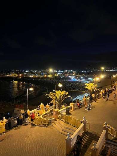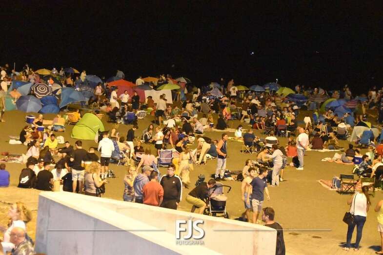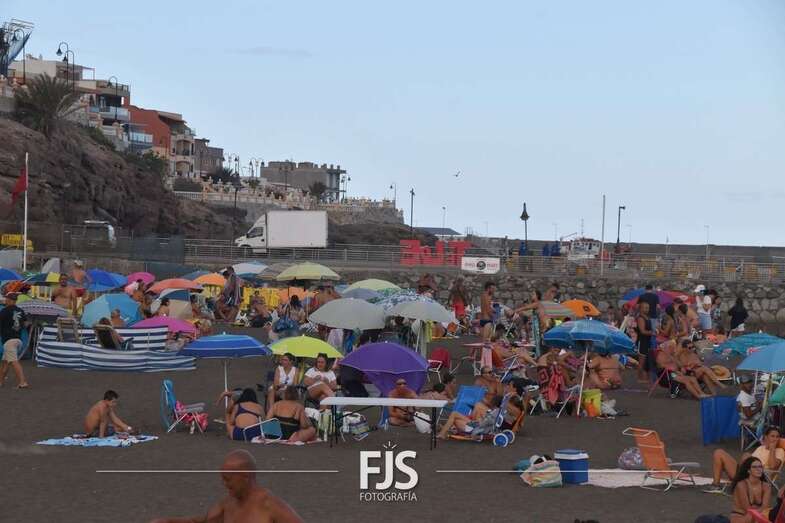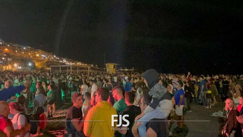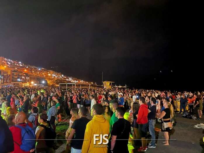 Miles de personas siguieron los fuegos desde la arena y avenida marítima de la popular playa teldense