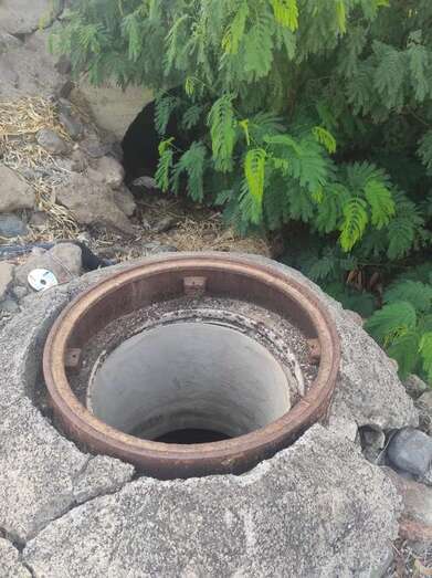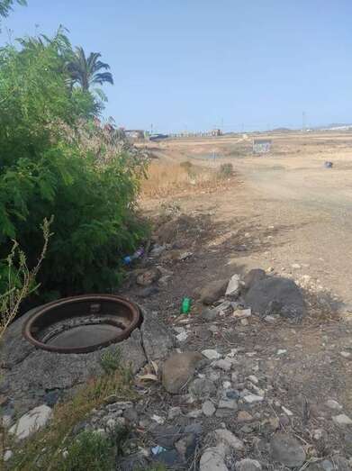 Arquetas del alcantarillado abiertas en un camino de tierra de Ojos de Garza (Telde)
