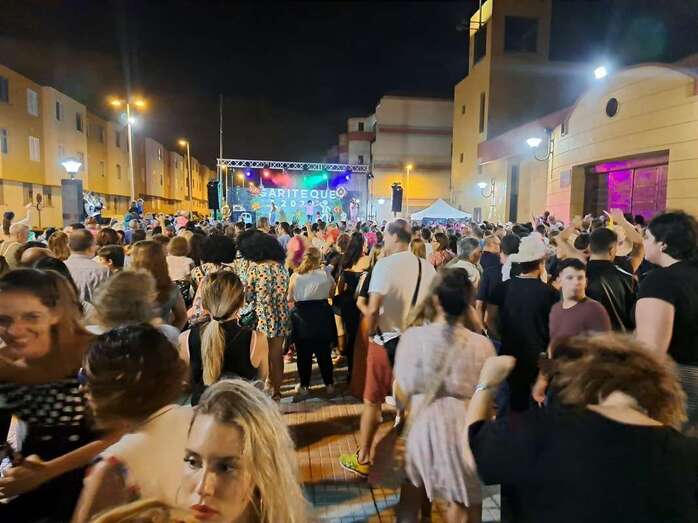 El evento arrancó a las 21.00 horas con el dj Toni Rodríguez, al que siguió el Gariteque en toda su esencia, con las actuaciones y las parodias de todo aquel que quisiera participar. El broche que oro lo puso el joven transformista Alberto Starckmann, vecino del barrio que actúa todos los años.