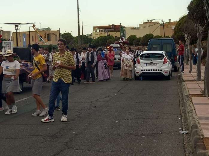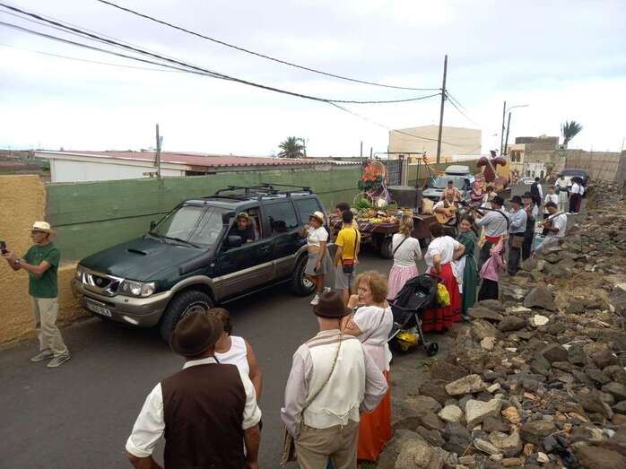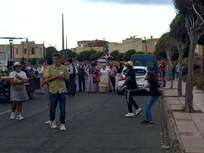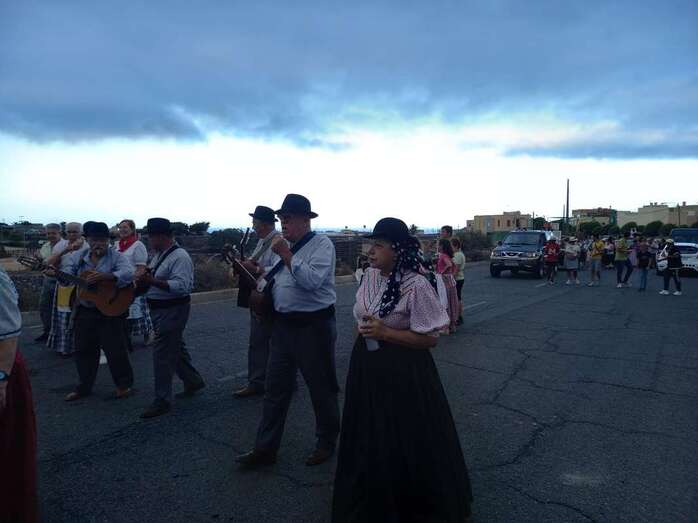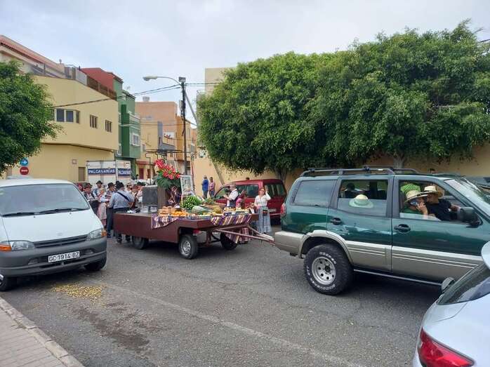 Ayer sábado, a las 18.00 horas, se puso en marcha una romería popular que partió de la calle de Tirma en dirección hacia la plaza pública con la participación de varias carretas y el acompañamiento musical de las parrandas La Sal de La Garita y La Aulaga de Agüimes.