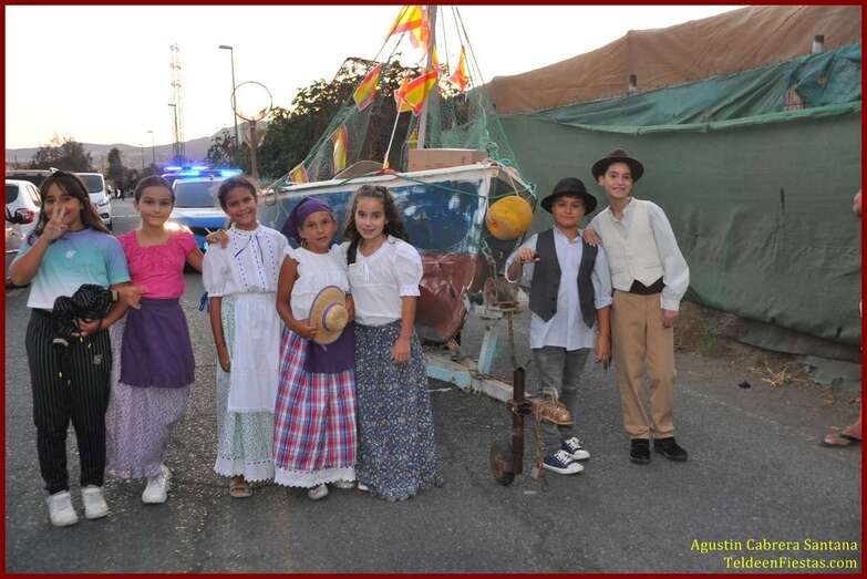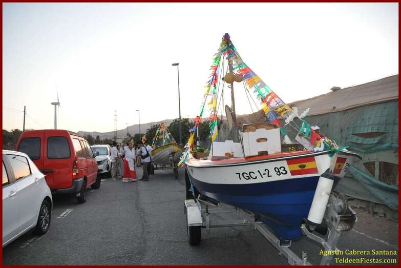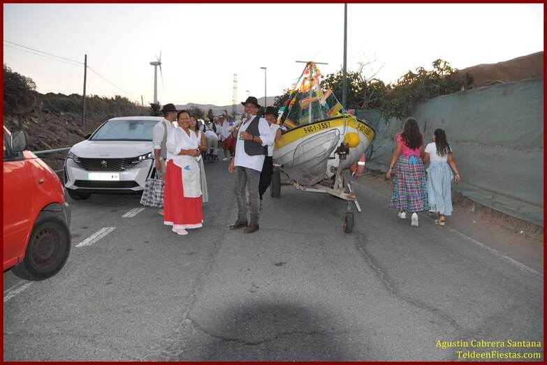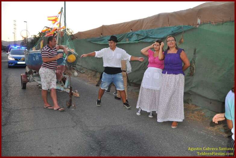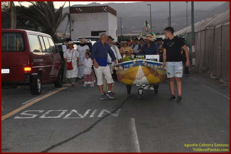 El desfile popular se puso en marcha pasadas las 20.00 horas en el camino de entrada y salida de la playa de Ojos de Garza y finalizaría en la plaza pública con la ofrenda delante de la imagen del Santo Cristo que preside la pequeña ermita del lugar.