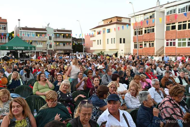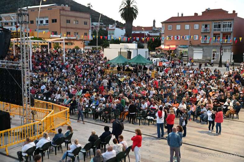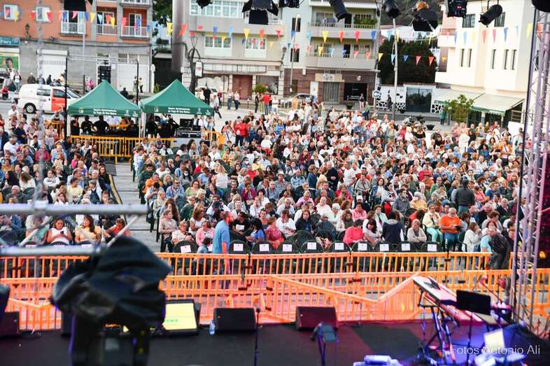 El cantante teldense llena hasta la bandera la nueva plaza de la Solidaridad del municipio grancario
