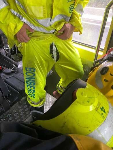 Los bomberos del parque zonal de Telde se quejan del pésimo  estado de los impermeables que usan para protegerse de las lluvias, como ha ocurrido en las últimas jornadas y horas en sus intervenciones motivadas por la tormenta Hermine.