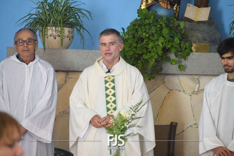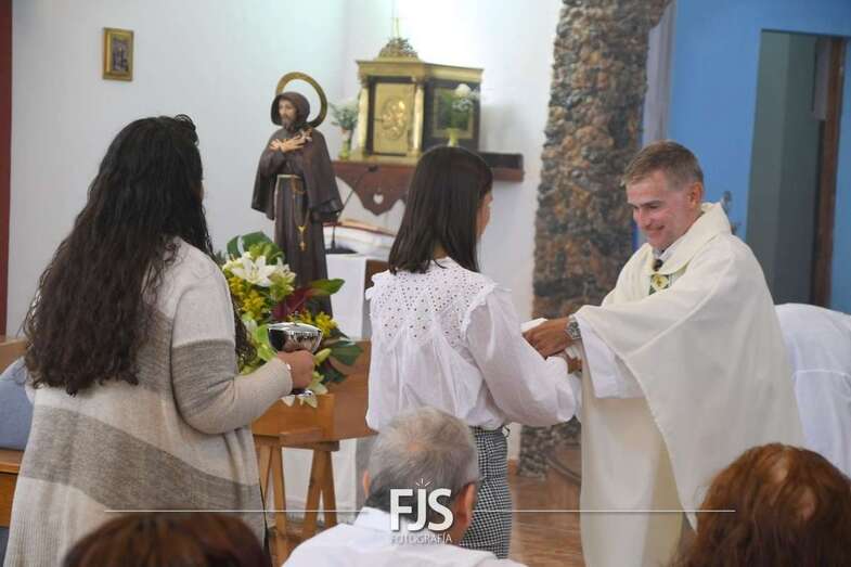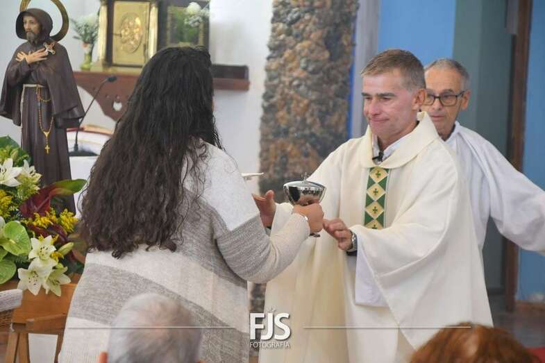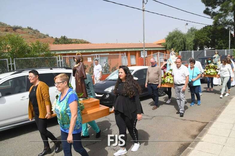La eucaristía fue oficiada por el nuevo párroco de la zona, Ricardo Miranda, y después tuvo lugar el desfile de las veneradas efigies por calles del barrio con el acompañamiento de la Banda Municipal de Telde y de los ediles Juan Martel, Jonay López y Sergio Suárez, los tres del Gobierno de Telde.
