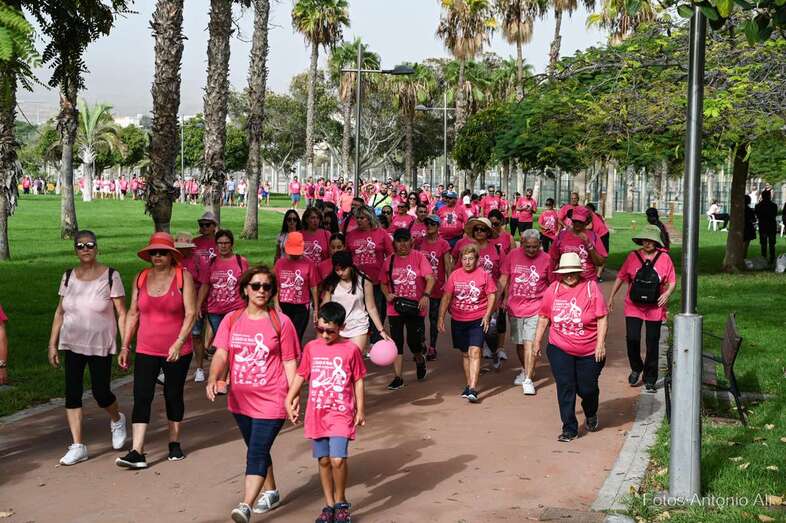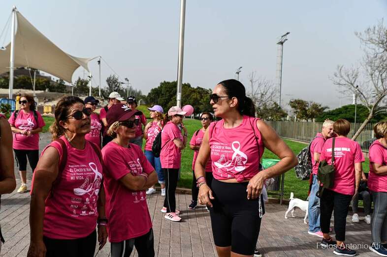 Ayer se recorrieron 7 kilómetros, con Marisa Herrera Ramos, presidenta del colectivo organizador marcando el ritmo, acompañada por una marea rosa que llenó de significado el caminar. Con cada paso un aliento, un apoyo incondicional y una lucha constante y perseverante por cada mujer, madre, abuela, hija y nieta, que se enfrentan cada día a este sino, el cáncer de mama.